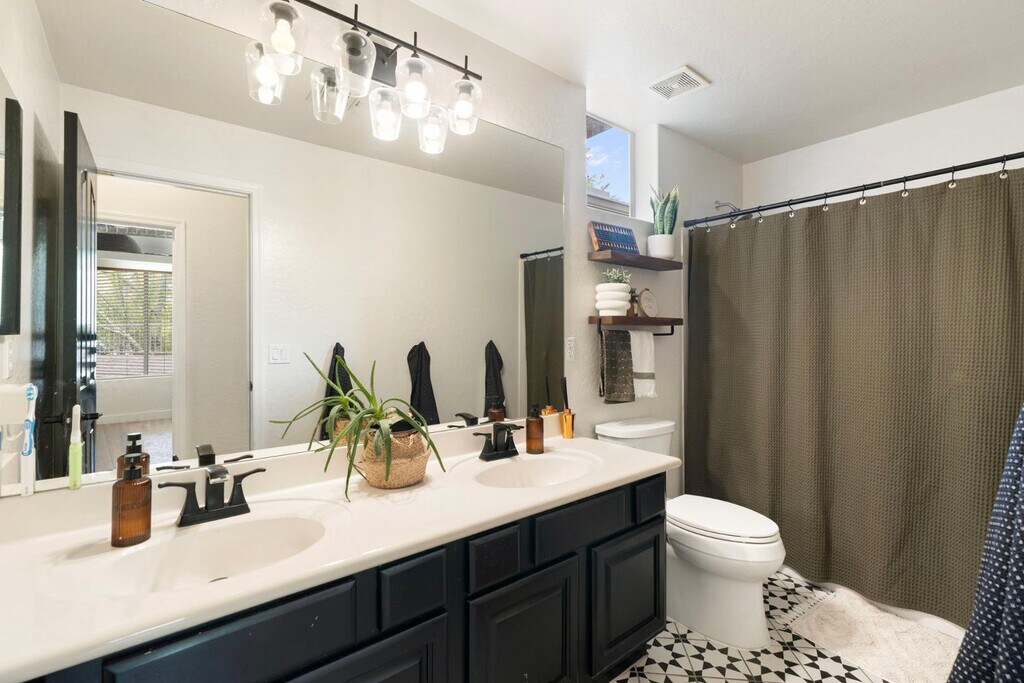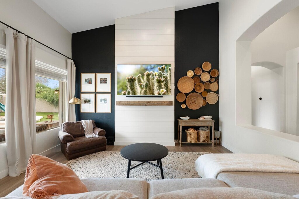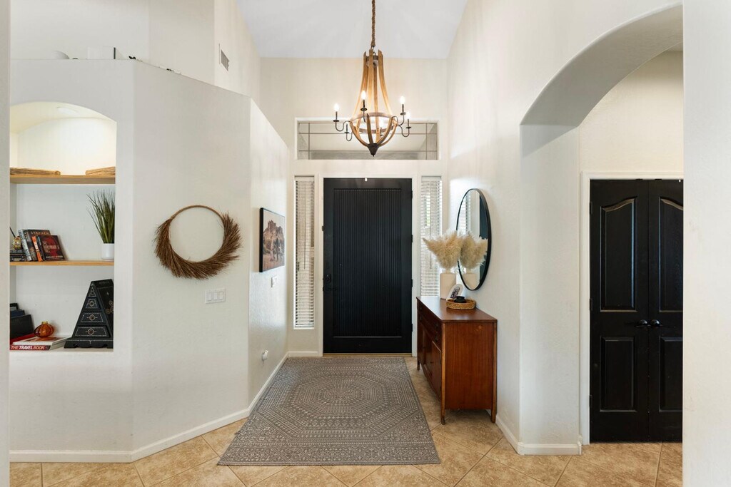 Located in a gated Cave Creek neighborhood with great access to schools,shopping,and dining,this spacious rental offers a split floor plan,flexible living spaces,and resort-style outdoor living. The home includes 3 bedrooms,including a private primary suite,guest ensuite,and separate guest bedroom,plus 2 bonus rooms ideal for an office,media room,gym,or flex space. One bonus room could also serve as additional sleeping space with direct bathroom access. Enjoy mountain views,a saltwater pool and spa,covered patio with misters,in-ground trampoline,Tesla solar,2 EV plug-ins,Nest and Yale smart home features,a Samsung Family Hub refrigerator,R.O. system,and saltless water softener. Pool service included and select furnishings may be negotiated separately.