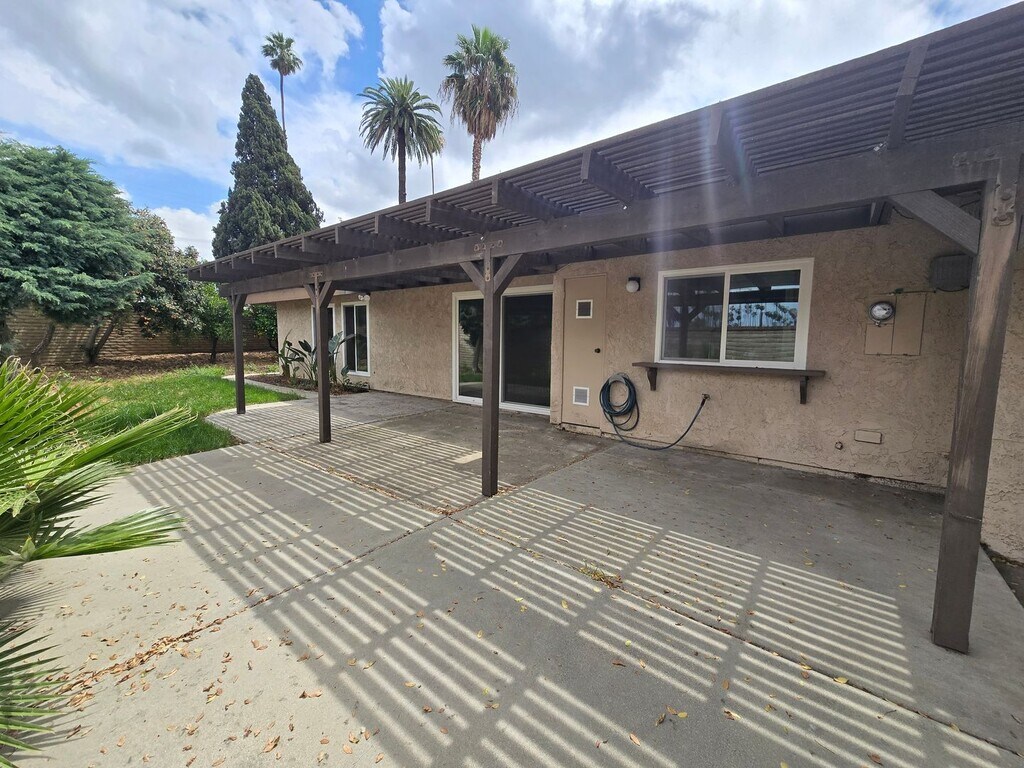 Welcome to this charming single-story home located in the desirable Victoria neighborhood. As you enter through the front gate, you’re welcomed by a private courtyard that creates a warm and inviting approach to the home. Step inside to find a bright and airy living room to the right, featuring vaulted ceilings and a stunning floor-to-ceiling fireplace that makes a striking first impression. To the left, you’ll find a dining area, kitchen, and a comfortable family room with direct access to the backyard—perfect for everyday living and entertaining. A long hallway leads you to the rear of the home, where all bedrooms are thoughtfully situated. The two secondary bedrooms share a spacious hallway bathroom. The primary suite offers vaulted ceilings, dual closets, and a private en-suite bathroom. It also has convenient access to the backyard. The backyard is a true retreat, offering a blend of patio space, green space, and mature fruit trees—ideal for relaxing or hosting gatherings. It also has an attached 2 car garage with direct access to the kitchen for convenience. Centrally located, this home provides easy freeway access and is just minutes from shopping, dining, and everyday conveniences.