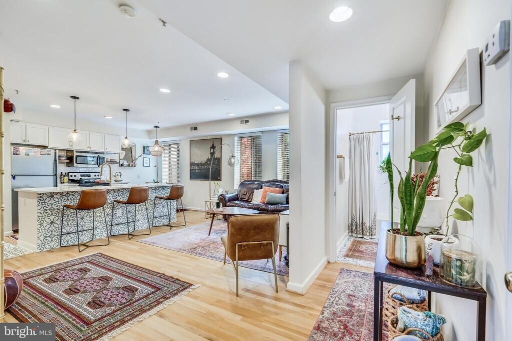 Welcome to unit #106 at the Jefferson Condo, a bright and spacious completely renovated 1- Bedroom apartment. Inviting and open living space with tiled entry floor, exposed brick, recessed lights, and central A/C. Stylish kitchen featuring white shaker cabinet, stainless steel appliances, island with counter seating and pendant lighting, and eat-in dining area with chandelier. In-unit stacked washer/dryer. Sleek three-piece bath with subway tile, a tub/shower, and medicine cabinet. Large bedroom with two bright windows and ample closets complete this cozy oasis. Freshly painted and beautiful oak hardwood floors throughout. The building is well-maintained and the unit is professionally managed. Pets case by case. Available ASAP The Brightwood Park/Petworth location is a charming and vibrant area nestled in the heart of Washington, D.C. Known for its tree-lined streets, historic architecture, and a strong sense of community, it offers a perfect blend of urban living and suburban tranquility. Enjoy easy access to downtown D.C., major transportation routes, and proximity to the Georgia Avenue-Petworth Metro station, making commuting a breeze. Take part in the various neighborhood events, including farmers' markets, street festivals, and community clean-ups, fostering a warm and welcoming atmosphere.