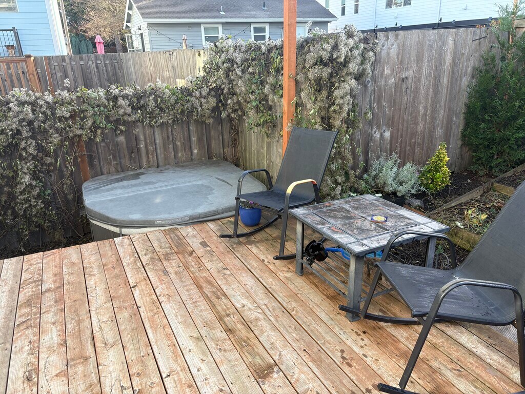 Quality-built, 10 year old modern craftsman on quiet street in North Tabor. Hardwood floors throughout. Bright and airy open-concept main floor features 9’ ceilings, oversized double-hung windows, crown molding, gas fireplace, half bath and laundry room. Hardwood kitchen cabinets, quartz countertops, generous pantry. All new stainless steel kitchen appliances including Forno electric convection oven. Upstairs master suite with oversized shower. Two additional upstairs bedrooms and second full bath. Front porch and fenced south-facing back yard/deck with hot tub, dahlias, lilies, gorgeous cascading wisteria and fruiting cherry trees. Interior stairs down to oversized one-car garage and small storage room. On-demand hot water and brand new solar system. North Tabor is a safe, friendly neighborhood less than a mile from both Laurelhurst Park and Mount Tabor. You have your choice of cherished east side commercial districts, all within minutes (Burnside, Hollywood, Hawthorne, Montavilla, Beaumont) . QFC, Oly’s Pizza and Tabor Tavern are all one block away. Easy access to freeway and Max Red Line. 15 minutes to airport, 30 minutes to Multnomah Falls and Columbia River Gorge.I