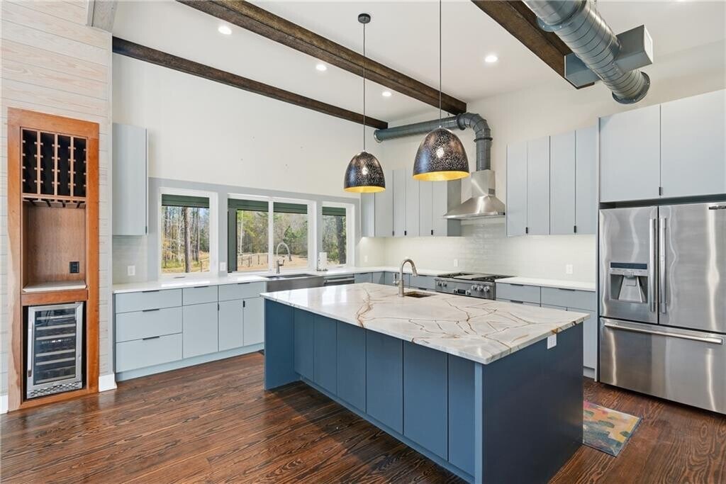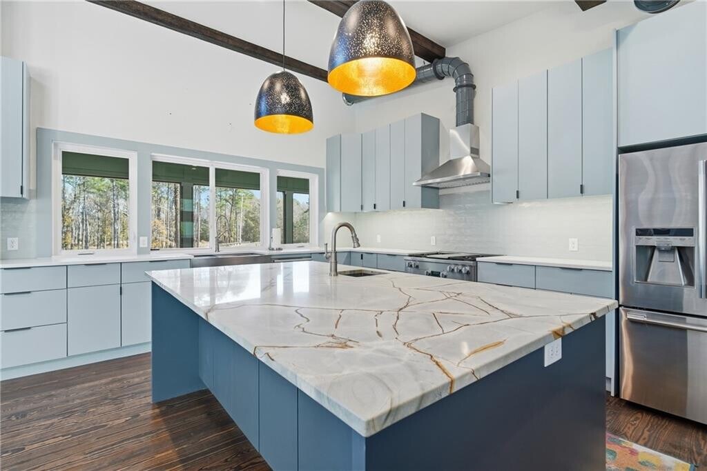 Custom-built estate home off 341 available for lease! This exceptional property offers unmatched privacy, surrounded by approximately 100 acres of undeveloped, wooded land. The home is thoughtfully designed with open, bright interiors and serene views from every room. Inside, you’ll find vaulted ceilings, beautiful natural wood walls and ceilings, and a seamless flow from the main living space to a spacious screened porch overlooking peaceful pond views. The kitchen features a walk-in pantry and ample storage, while the stunning primary suite boasts 14-ft ceilings and a spa-inspired bath. Additional highlights include a 2,000+/- sq ft garage, an operating elevator, and rooftop solar panels that offset most, if not all, electric costs keeping utilities minimal. Property is serviced by private well and septic. Private showings are available by appointment. Contact listing agent to schedule your tour! Background, credit, eviction history, income verification, and references are required. Applications can be completed through Please view the survey to see the specific section available — lease only includes the surveyed 0.7654-acre portion surrounding the main house.