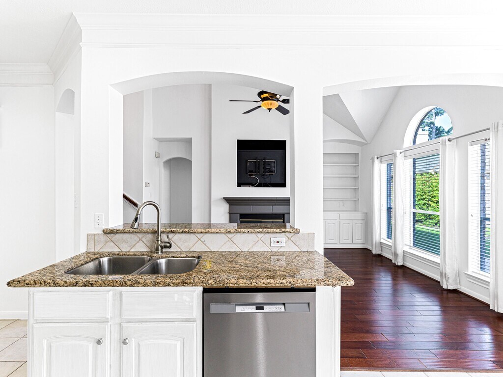 Welcome to this 2800 sq ft gem in Lakes On Eldridge. Primary bedroom down,HUGE game room up,den,formal dining,and HOME OFFICE. Bright kitchen,granite counters,en suite bathroom with jacuzzi tub. Lakes on Eldridge offers 7 lakes,jogging trails,Olympic size pool,tennis courts,and clubhouse. This gated subdivision also includes a beach volleyball court and playgrounds for families. Newly painted interior and exterior,recent roof and AC replacements. An ideal community to call home! MLS# 58121296