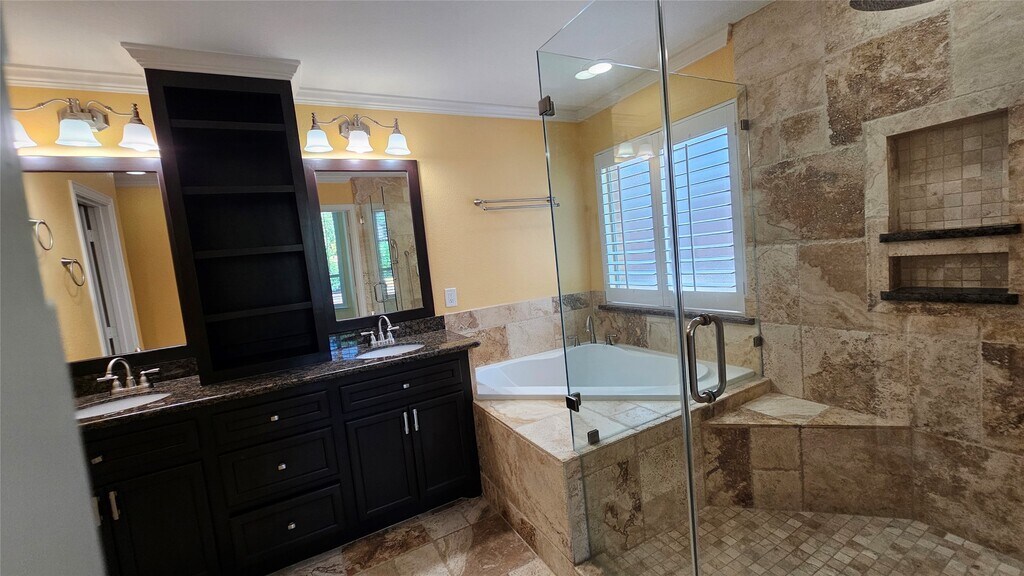 Amando QueirogaGorgeous 4/3/2 w/POOL, study and game room on a quiet cul-de-sac, near schools and walking trails. Plank vinyl floors and tile throughout. No carpet. The home has an awesome, backyard, perfect for entertainment. Great size covered deck overlooking gorgeous pool. Unique floor plan with three downstairs bedrooms, and one upstairs with a full-size bath, and a big game room! Seven Meadows is a fantastic master plan community near La Centerra, restaurants and grocery stories Very accessible to Grand Parkway and Westpark Toll. The home is zoned to awesome KISD schools! You will love the huge and bright island kitchen opened to the big family room with gas log fireplace, study, formal dining room and the open floor plan w/ lot's of windows and plantation shutters. The spacious primary suite has a great view of the pool, master suit bath w/ large walk-in shower, big soaking and big walk-in closet. Oversize garage. Home is very close to neighborhood pool. Location is awesome!