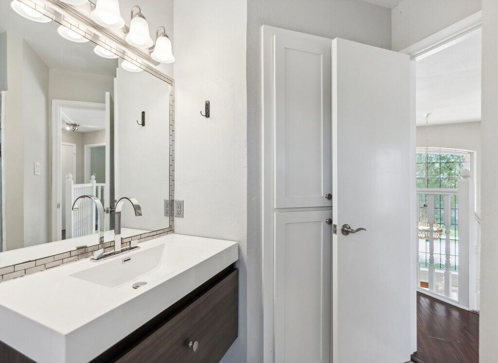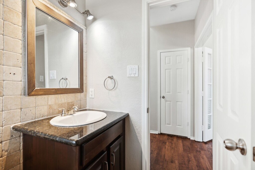 Stunning 3 or 4 bedroom, 2.5 bathroom home. This home boasts a grand entry, open concept living space with a cozy fireplace, office/4th bedroom, formal dining area, and a large utility room. The kitchen features granite counters and plenty of storage throughout. All bedrooms are conveniently located upstairs, with the primary bedroom offering a spacious en-suite bathroom complete with a separate walk-in shower, dual sinks, private toilet area, large bathtub and huge primary closet. The secondary bedrooms are generously sized and share a fully updated bathroom. Outside, you'll find a fenced backyard with a back patio perfect for enjoying the outdoors. FEATURING: 2209 Sq Ft (+/-) 3 bedroom 2.5 bath 2 car garage Formal Dining Office/4th Bedroom Open concept Living with fireplace Oversized Utility All bedrooms upstairs Fully updated baths Half bath downstairs New LVP in downstairs ****We DO NOT Accept Section 8 or Housing Vouchers. GREAT LOCATION IN FRISCO. EASY ACCESS TO MAJOR AREA HIGHWAYS AND CLOSE TO LOCAL SCHOOLS AND SHOPPING.