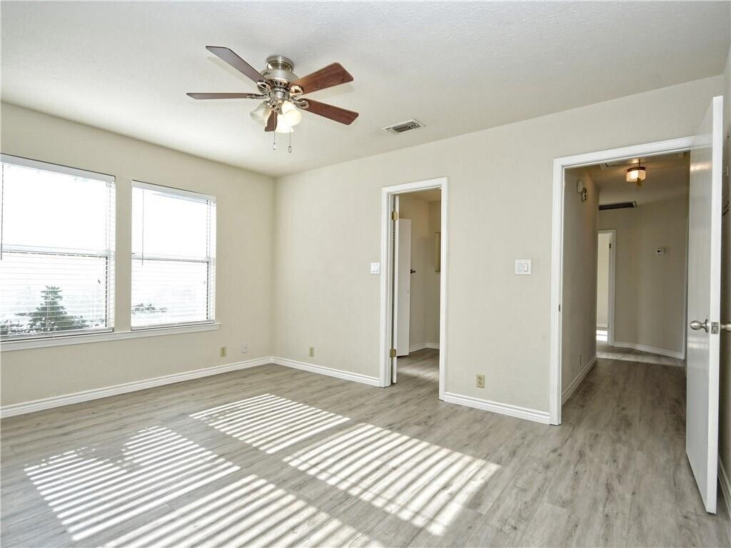 Perfect location with easy access to ACC or UT! This floor plan offers a double master suite with each bedroom having its own restroom. Both rooms have large closets and the back room features a bay window with a sitting area. Stylish wood flooring, bright walls, and an eat-in kitchen maximize the square footage. Huge yard with large trees all around for shade. Large shed in back for extra storage.
