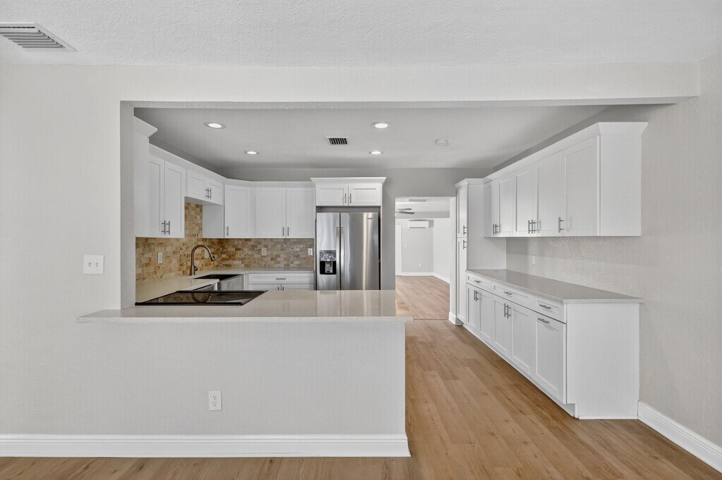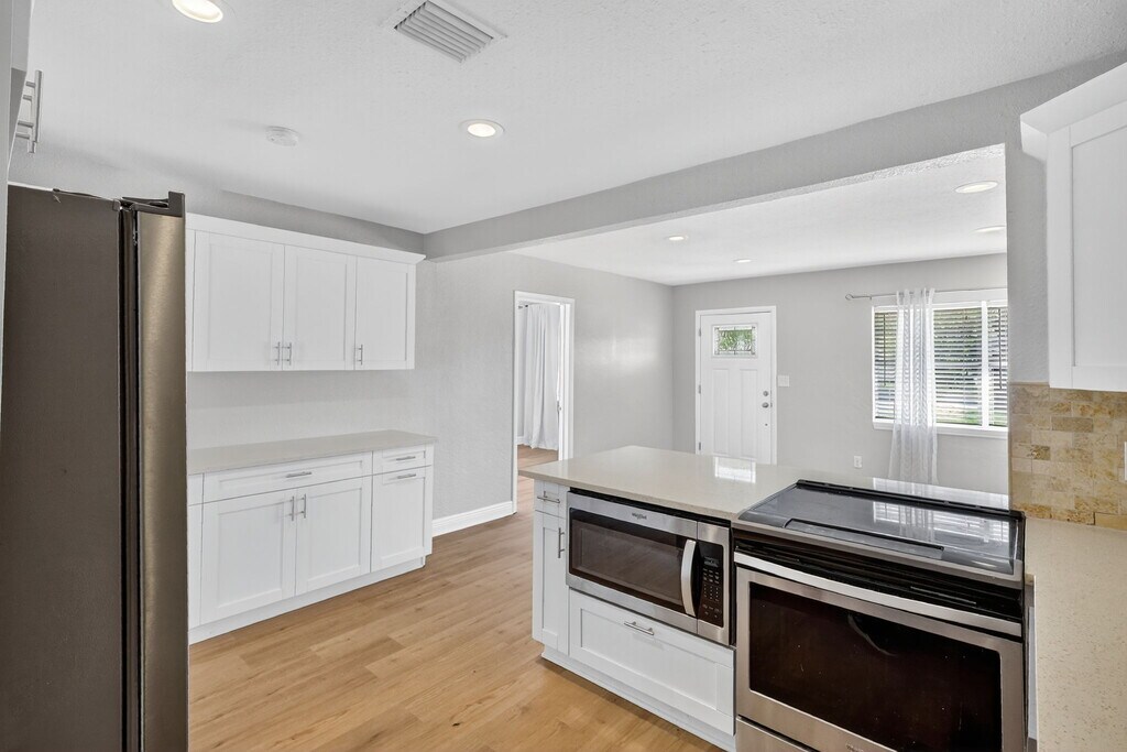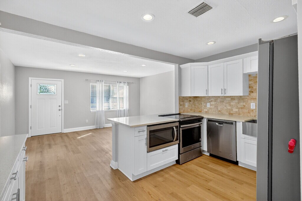 Welcome to this updated rental home in NE Snell Shores. This split floor plan offers an open and comfortable living space, featuring an upgraded kitchen with quartz counters, stainless steel appliances, and a breakfast bar that flows into the main living area. The primary bedroom includes a private en suite bath with dual sinks and a walk-in shower, while the second bathroom provides a relaxing tub. A spacious great room opens through French doors to a private fenced backyard, giving you an ideal indoor–outdoor living setup. Parking is convenient with an alley-access carport and a circular driveway in front. The home is also situated close to neighborhood parks with boat ramps, the 4th Street dining corridor, and just minutes from Downtown St. Pete. Perfect for those seeking a well-maintained, conveniently located home with modern updates and plenty of space to unwind. Welcome to this updated rental home in NE Snell Shores. This split floor plan offers an open and comfortable living space, featuring an upgraded kitchen with quartz counters, stainless steel appliances, and a breakfast bar that flows into the main living area. The primary bedroom includes a private en suite bath with dual sinks and a walk-in shower, while the second bathroom provides a relaxing tub. A spacious great room opens through French doors to a private fenced backyard, giving you an ideal indoor–outdoor living setup. Parking is convenient with an alley-access carport and a circular driveway in front. The home is also situated close to neighborhood parks with boat ramps, the 4th Street dining corridor, and just minutes from Downtown St. Pete. Perfect for those seeking a well-maintained, conveniently located home with modern updates and plenty of space to unwind.