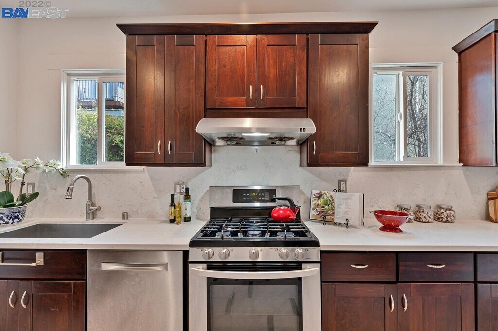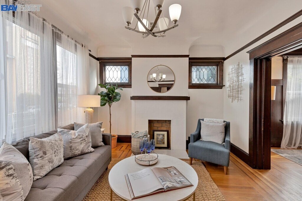 Situated on a generous 3,200 square foot lot, this meticulously maintained 1910 Craftsman showcases the best of Oakland living. The two-story home spans 1,589 sq ft and features sun-drenched rooms with original hardwood floors, a completely updated kitchen with granite counters and modern appliances, and thoughtfully renovated bathrooms. Layout & Features: Stairs lead to the first floor, where you'll find one bedroom and half bath on the entry level, providing convenient single-level living space. The main level flows seamlessly from the formal living room through to the dining area and chef's kitchen. Upstairs, three additional well-appointed bedrooms and two full bathrooms provide ample space. Period details including crown molding, built-in cabinets, high ceilings, and classic Craftsman woodwork add character throughout. Decorative fireplaces in both the living room and dining room contribute to the home's historic charm. Step outside to your private backyard oasis - perfect for dining al fresco, gardening, or simply enjoying Oakland's enviable weather. The exceptionally long driveway provides secure off-street parking and ample storage space, a rare find in this walkable neighborhood. Prime Location: Located just blocks from Lake Merritt, with easy access to BART, parks, and Oakland's thriving dining scene, this home offers urban convenience with residential tranquility. Walk Score: 94, Bike Score: 98. Note: Please do not disturb current occupants.