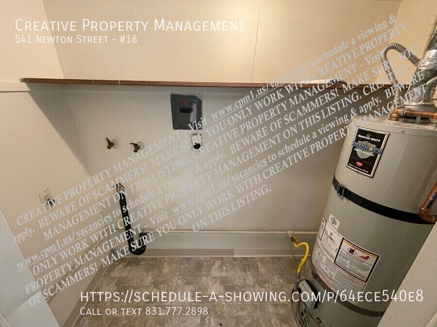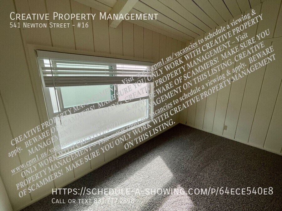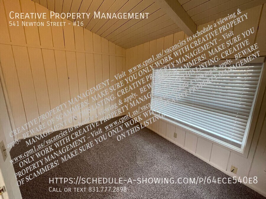 All showings are self-showing - schedule on-line thru or website cpm1.us Schedule a showing between 8:00am and 6:30pm daily. Welcome to a charming 2-bedroom, 1-bathroom apartment nestled in a peaceful setting, this unit combines comfort with convenience, offering a perfect blend of indoor and outdoor living, new carpet throughout, washer and dryer hook ups, step outside to your own fenced patio, ideal for morning coffees, evening relaxation, single-car garage offers secure parking and additional storage space. Located in the vibrant city of Monterey, this home is just minutes away from local attractions like Cannery Row, the Monterey Bay Aquarium, and beautiful coastal paths. Whether you're exploring the cultural offerings, enjoying the seaside, or simply soaking in the serene environment. Deposit $2,275 No Pets, No Dogs, No Cats No Smoking No Cosigner's