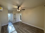 Step inside to a bright, open living area with luxury vinyl plank flooring throughout and abundant natural light. The adjacent kitchen showcases granite countertops, updated cabinetry, and a double basin sink. Each bedroom includes ceiling fans and ample windows, and the full bath offers a tub/shower combination. Water and electric included.
