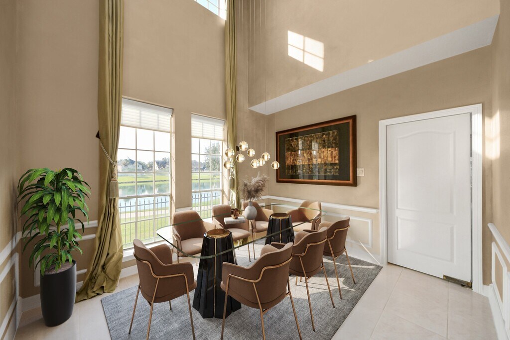This two-story lakeside home in The Villages of Avalon offers serene water views from nearly every room. The property features a grand foyer with a sweeping staircase,iron balusters,and a chandelier. The main floor includes a private study with custom built-ins,formal living and dining rooms with high ceilings and large windows,and an open-concept family room connected to a gourmet kitchen with a center island,gas cooktop,stainless-steel appliances,and ample cabinetry. The first-floor primary suite includes a sitting area,dual vanities,Jacuzzi tub,separate shower,and walk-in closet. Upstairs,there is a spacious game room and additional bedrooms. Exterior features include access to community amenities such as an infinity pool,clubhouse,tennis courts,walking trails,playgrounds,and pocket parks. MLS# 60825786