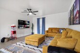 This 5-bedroom home in San Antonio, TX, is packed with amenities for an unforgettable vacation. Feel at home with features like a private pool, hot tub, fire pit, pergola, movie theater with a popcorn machine, game room with arcade games, wall games, pool and foosball table, outdoor patio and dining area, BBQ grill, putt-putt, corn hole, giant Connect 4 and Jenga, a fully stocked kitchen, TVs in each bedroom, a dedicated workspace, family-friendly amenities like a high chair and Pack ’n Play, washer and dryer, and ample parking. Welcome to your San Antonio getaway! This spacious 5-bedroom, 4-bathroom retreat is designed for big groups and families, comfortably accommodating up to 16 guests. Whether you’re gathering for a family reunion, celebrating with friends, or planning a fun-filled vacation, this home has room for everyone to relax, recharge, and make memories. Step inside and you’ll find a warm and inviting space perfect for both entertaining and unwinding. With multiple bedrooms, cozy living areas, and plenty of bathrooms to go around, no one has to wait their turn. The fully stocked kitchen makes cooking for a crowd easy, while the dining and lounging spaces invite everyone to come together for meals, games, or movie nights. Outside, enjoy the Texas sunshine, share laughs over a meal, or sip your morning coffee while planning the day’s adventures. Parking is available in the driveway for up to 4 cars, and street parking is allowed. Plus, you’ll be just minutes away from San Antonio’s most exciting attractions, restaurants, and entertainment. Nearby attractions include The Alamo, San Antonio River Walk, San Antonio Missions National Historical Park, San Antonio Botanical Garden, and Brackenridge Park. Restaurants like Chef’s Table, Stuffed, Pelicana Chicken, Tacopolis, and La Fonda on Main are also close by. Renting a car is a convenient option to explore the area, and rideshare services like Uber and Lyft are readily available. Check-in is at 4pm and check-out is at 10am. No pets are allowed. No parties are allowed, and violations may result in immediate termination of the stay. An exterior camera is installed solely to monitor the cleaning team for quality and security purposes. Guests must be 21 years or older to book this property. The home includes a dedicated workspace for those who need to work during their stay. [SI]