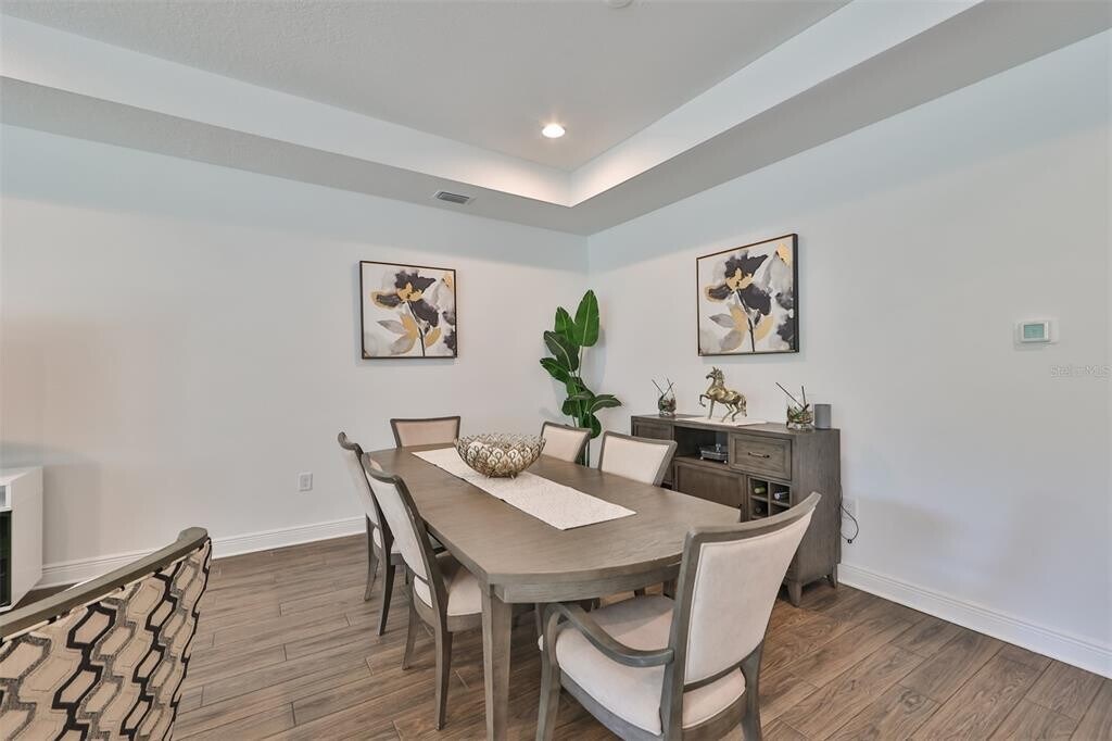 Luxurious,fully upgraded living awaits in this gorgeous Ginnie model by MI Homes. This spacious home offers 4 bedrooms and 3 baths,alongwith a 3-car garage. The open-concept living and dining areas flow seamlessly into a chef-inspired kitchen featuring white cabinetry,quartzcountertops,top-tier stainless steel appliances,and a large island - ideal for entertaining. The master suite is bright and inviting,with a generouswalk-in closet and an upgraded bathroom featuring a walk-in shower. The home sits on a cul-de-sac with a conservation lot,and a serenebackyard that enhances privacy and tranquility. Located in a gated community near shopping and major highways,this property combinessecurity,convenience,and lifestyle. Don't miss the chance to see this beauty - call to schedule your private showing today! MLS# TB8479620