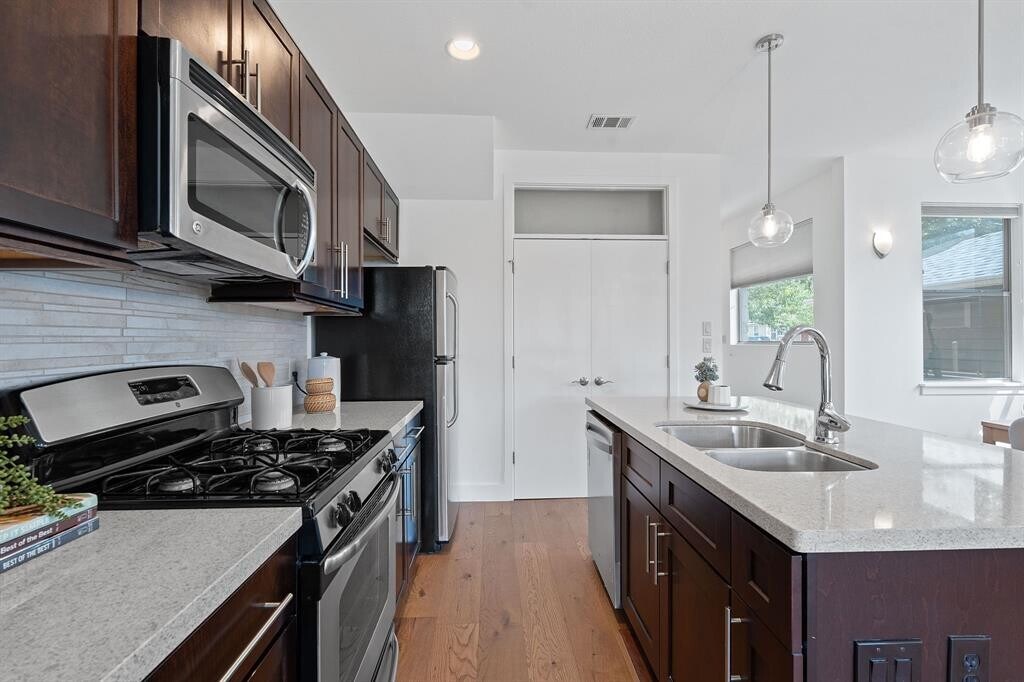 Beautiful, spacious, and contemporary townhouse-style condo with a detached garage in a quiet neighborhood just minutes from everything you need. Featuring numerous recent upgrades, including brand new flooring and fresh interior paint. The owner thoughtfully replaced the roof (less than 2 years old) and installed a new fence and deck in 2024. This light-filled home offers a bright, open main floor with tons of natural light, an updated kitchen, and abundant storage throughout. The generously sized primary suite includes a large en suite bathroom and ample closet space. Enjoy the lush, HOA-maintained backyard with a large patio—perfect for relaxing or entertaining, and take advantage of low-maintenance living with modern comforts in a prime central location.