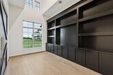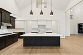 Step into elevated living with this breathtaking Modern Tudor residence — a perfect blend of architectural heritage and contemporary sophistication. From its steep gables and light artisan brickwork to the bold black-trimmed windows and thoughtfully illuminated landscaping, every detail exudes timeless elegance and curb appeal that captivates from sunrise to sunset. Inside, the home unfolds into expansive open-concept living. Vaulted ceilings crown the light-filled great room anchored by a sleek white marble fireplace, while panoramic windows frame serene views and bathe the space in natural light. The chef’s kitchen features a waterfall island, striking two-tone cabinetry, and designer pendant lighting — offering a refined space for both casual gatherings and upscale entertaining. The primary suite delivers a true retreat with its spa-inspired bath boasting dual vanities, marble flooring, a soaking tub, and glass-enclosed shower. A private flex room serves as a sophisticated study or creative lounge, complete with built-in shelving and lush backyard views. Outside, enjoy the tranquility of a covered patio with exposed beams and brick columns, opening to a manicured lawn and scenic neighborhood vistas. Evening ambiance is enhanced by strategic uplighting that accentuates the home’s facade and transforms the rear elevation into a serene haven. Highlights: - Modern Tudor architecture with steep gables and artisan finishes - Expansive windows and vaulted ceilings for abundant natural light - Designer kitchen with waterfall island and premium appliances - Spa-worthy primary bath with marble details and walk-in closet - Sophisticated study with custom built-ins and backyard views - Covered patio for seamless indoor-outdoor living - Landscape lighting and sunset-ready curb appeal This home delivers timeless charm, contemporary luxury, and a curated lifestyle — ready for the most discerning buyer to make their mark.