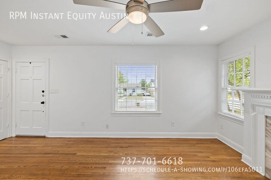Located in Hyde Park this lovely home is a two-bedroom, one bath cottage with a large privacy-fenced backyard. This inviting home features beautiful wood floors throughout, timeless character, and a blend of original charm with select updates. The cozy living room includes a faux fireplace, while the dining area offers a lovely built-in corner cabinet that adds to the home’s vintage appeal. Enjoy year-round comfort with central A/C and heat, plus tinted windows throughout for added energy efficiency. Outside, the xeriscaped yard offers low-maintenance living with great curb appeal. Located in one of Austin’s most desirable and walkable neighborhoods, this home provides easy access to local dining, shopping, and major highways. Available now—this Hyde Park gem won’t last long. Schedule your showing today! Resident benefit package required None