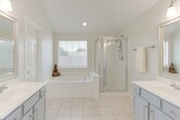 Lock in this location right before school starts in this adorable house with loads of upgrades and charm! At the entry of the home is a large formal dining room that could also serve as a home office if needed. The kitchen offers light quartz countertops,matching backsplash,crisp paint,newly installed hardware on the cabinetry,and a breakfast room right off the kitchen so the chef won't miss a thing! A modern stone fireplace wall is the highlight of the large family room that creates separation from the primary and secondary bedrooms for the ultimate private primary and ensuite. Primary bath includes separate shower,jetted tub,double separate vanities,and a walk-in closet. Wood and tile throughout,you won't have to worry about carpet anywhere! Enjoy the large front yard,covered back patio,and fenced grassy backyard that is all maintained by professional landscapers. MLS# 90416457