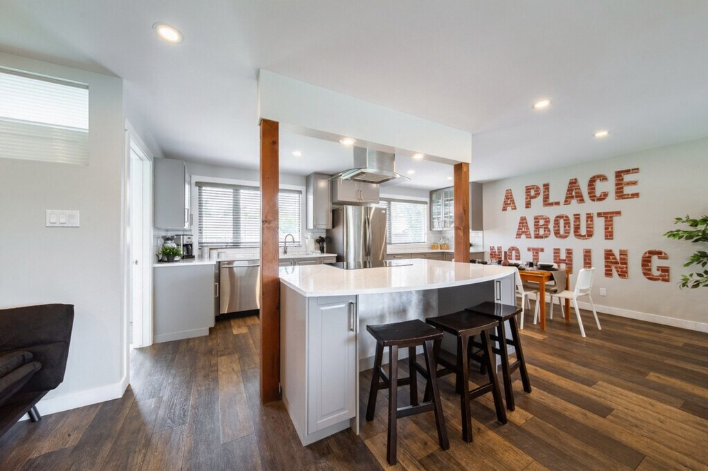 Feel at home in this centrally located Edmonton home, boasting a spacious 1100 sqft layout with a large backyard. Perfect for families, this home features five bedrooms and two bathrooms, providing ample space for everyone. Situated within walking distance to Southgate Mall and just minutes from major roadways, you'll have easy access to the University of Alberta, Rogers Place, and Edmonton International Airport. The home is thoughtfully designed with a fully equipped kitchen, complete with stainless steel appliances including a microwave, fridge, gas stove, and dishwasher. Enjoy the convenience of in-home entertainment with smart TVs and fast WiFi, perfect for streaming your favorite shows or working from home. The stylish, modern decor creates a warm ambiance, making it an inviting space for relaxation. Parking is convenient with garage parking for one car, driveway parking for another, and plenty of free street parking around the home. Located in the peaceful and private neighborhood of Lendrum Place, this home offers both convenience and tranquility. With quick access to major city hubs, it's an ideal spot for travelers, students, and professionals. The University of Alberta is a short drive or LRT ride away, while Southgate Mall offers a variety of retail stores and dining options. Downtown Edmonton and Rogers Place are easily accessible, and the Edmonton International Airport is just a short drive away. This is a non-party home, and any evidence of a party will result in immediate cancellation of the reservation without a refund. Smoking of any kind is prohibited, and a $250 fee will be charged if the property smells of smoke or if evidence of smoking is found inside. Quiet hours are between 10 PM and 8 AM to respect the neighbors. Check-in is flexible with a self check-in electronic lock, and check-out is at 10 AM. Late check-out fees apply if not vacated on time. The home is remote work-friendly with fast WiFi, allowing you to work from home comfortably. A laptop computer is not included. [SI]