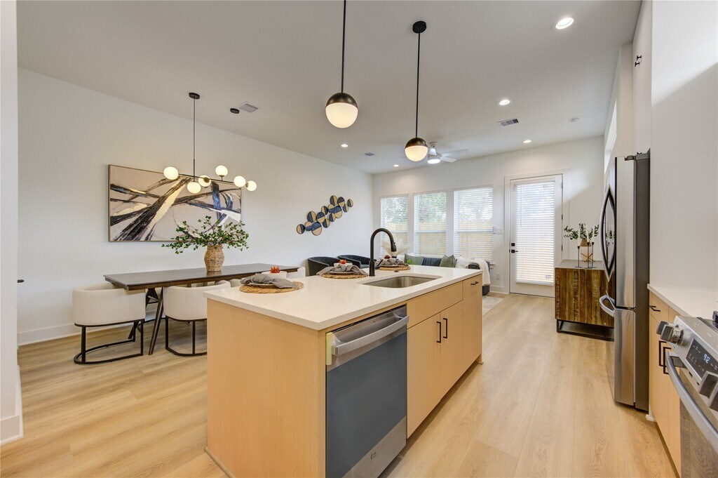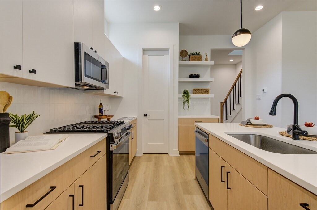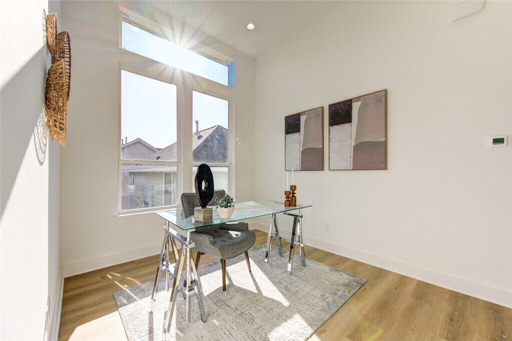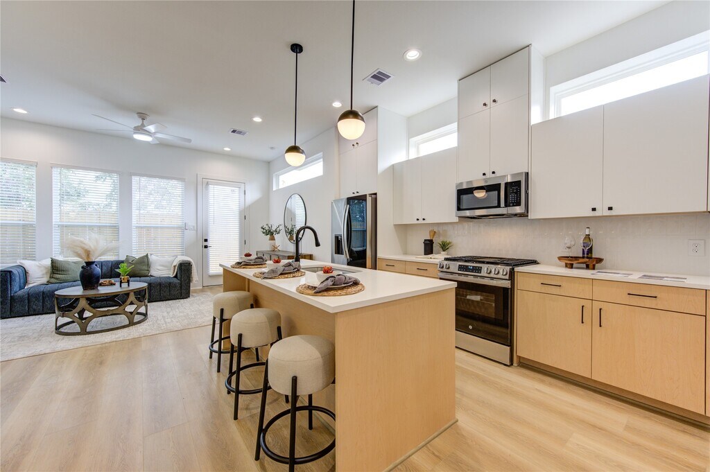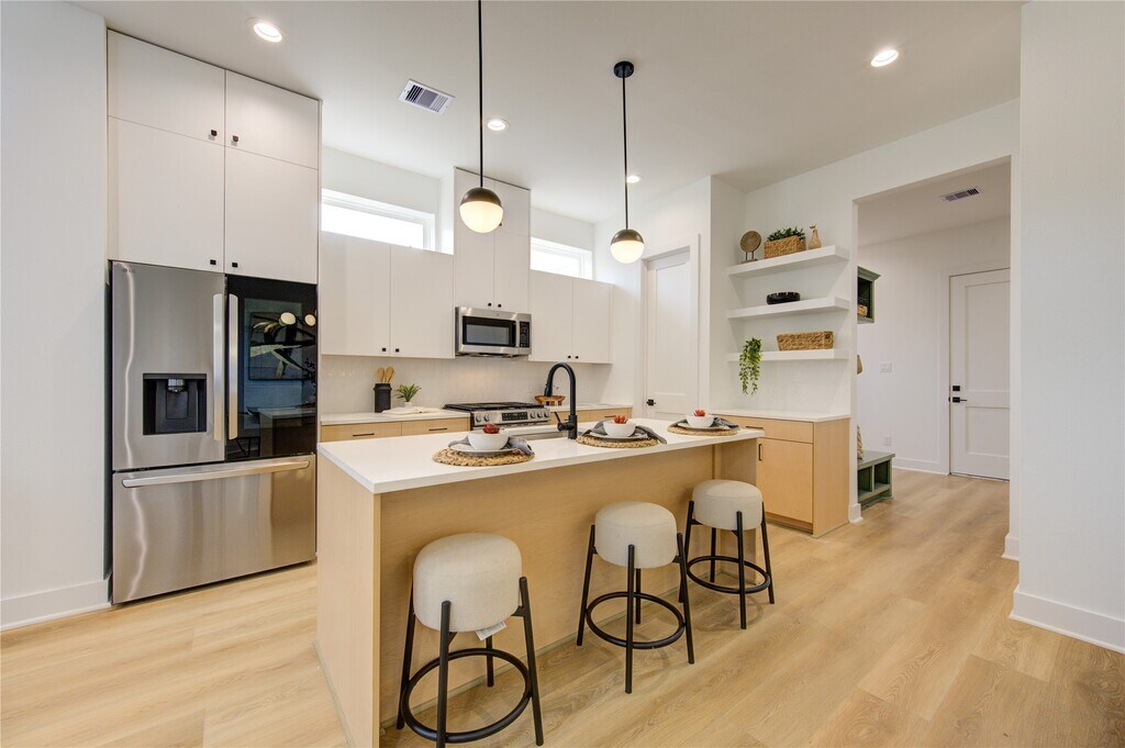 Last unit! New construction home by Bayou Hawthorn combines a modern design with everyday comfort and convenience. Just minutes from Downtown Houston and the exciting new East River development,you’ll enjoy easy access to dining,golf,trails,and waterfront green space. A private driveway,2-car garage,and NO HOA make city living effortless. Step inside to a bright,open-concept first floor featuring a spacious living and dining area,chef-inspired kitchen with two-tone cabinetry,quartz counters,and abundant storage—perfect for entertaining or relaxed daily living. A welcoming mudroom adds functionality. Upstairs,tall 12’ ceilings create an airy flex room ideal as a game room,office,or second living space. The luxurious primary suite offers tray ceilings,a spa-like bath,and generous walk-in closet. Two secondary bedrooms and a convenient laundry room complete the layout. Prewired with ethernet,EV-ready,and including blinds & refrigerator,this home is truly move-in ready! MLS# 20562547