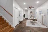 Don't miss out on this exceptional two-story home with its own private driveway,yard featuring concrete stamp pavers,all without an HOA. The first floor offers two bedrooms,a full bathroom connected to a versatile flex space,and a high-ceiling family room with a fireplace on the second floor. The kitchen boasts granite countertops and stainless steel appliances,adjacent to a dining room and office nook. The primary bedroom features high ceilings,dual sinks,a separate shower,jacuzzi tub,and a spacious walk-in closet. Enjoy the outdoor space for entertainment,easy freeway access,nearby restaurants,and a short walk to MKT Market. Includes refrigerator,washer,and dryer. MLS# 86009677