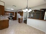 Three bed, two bath home with two-car garage minutes from SAFB. Step-down living room features wood-burning fireplace, vaulted ceiling with beams. Bright dining area flows into kitchen with electric range/oven, dishwasher, microwave, new fridge. Primary suite has walk-in closet and en suite bath. Two secondary bedrooms share hall bath. Laundry room with storage. Privacy-fenced backyard with covered patio. Perfect for military families seeking comfort and convenience near base.