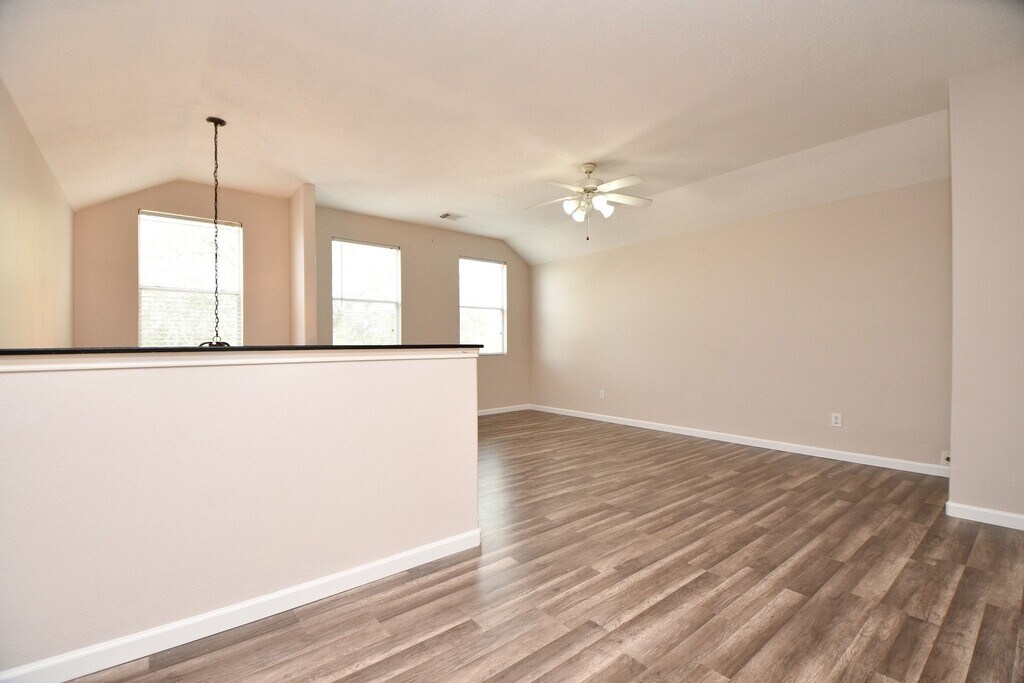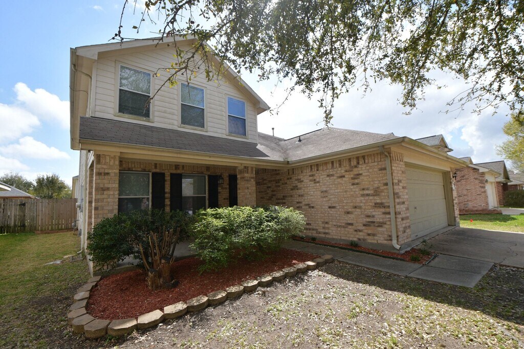 This home has four bedrooms,two and a half baths,and an upstairs game room,with the primary bedroom conveniently located on the first floor. The open-concept living area,kitchen,and breakfast nook feature tile flooring,while the kitchen boasts granite countertops and a formal dining room with a pass-through.Upstairs,you'll find three bedrooms and a game room with laminate flooring and ceiling fans,plus a laundry room for convenience. Enjoy the amenities of Springfield Estates,including lakes,walking trails,and parks,along with access to Goose Creek ISD,schools,I-10,grocery stores,dining,and shopping! MLS# 27909118