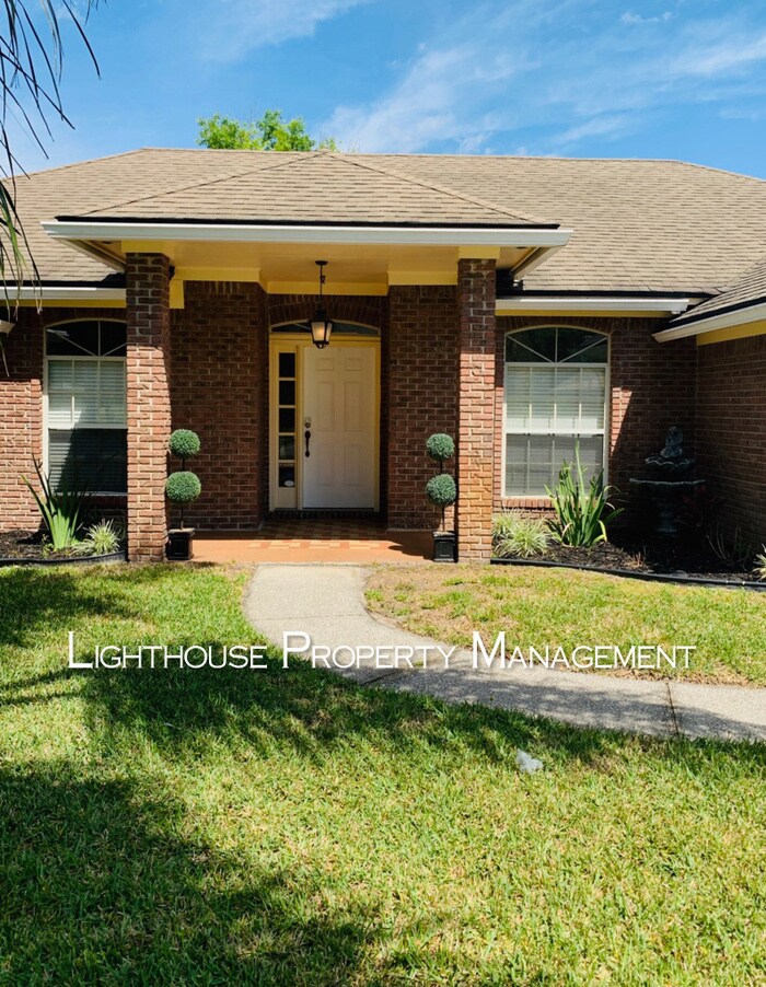 This home is a Must See! Well-maintained and spacious three-bedroom, two-bathroom single-family home. Located in the neighborhood of University Park in Jacksonville, FL, off University Blvd. N. in the subdivision of Emerald Bay, with an HOA. Nestled on a large manicured lawn, approach the front door to an attractive covered patio with appealing greenery. Enter the front door into the stunning foyer; to the left is a flex room, an ideal office, playroom, or den space. To the right is a formal dining room. Straightforward is an open living room with a decorative fireplace as the focal point. A hallway off the living room incorporates two guest bedrooms on opposite ends, guest bathroom with modern upgrades, and two additional hall closets. On the opposing side of the living room is a second hallway with a second entrance to the formal dining room. Across the hall, a galley-style kitchen equipped with stainless steel appliances, modern lighting fixtures, a pantry closet, an eat-in nook, and breakfast bar with a pass-through window overlooking the living room. Down the hallway to the left is the master bedroom suite with an attached bathroom and a walk-in closet. The master bathroom is fully remodeled with modern fixtures, flooring, vanity, new countertop, lighting, and shower tiling. Ending the hallway is a laundry room with built-in cabinets, including a washer and dryer. Off the laundry room is an attached two-car garage with exterior keypad entry and built-in cabinets. Back door access from the living room leads to a spacious back patio overlooking a fenced-in backyard. Additional home features include; ceiling fans, vaulted ceilings, tile flooring in the living areas, and hardwood flooring in the bedrooms. Fantastic location! Easy access to I-295 and other major interstates. Minutes from popular dining and shopping destinations, grocery stores, banks, schools, Jacksonville Zoo and Gardens, Downtown Jacksonville, The St. Johns River, Southbank Riverwalk, Jacksonville University, Blue Cypress Golf Club, and many well-known parks and nature centers! This home is available now and ready for immediate move-in! The tenant is responsible for utilities. Twelve Month Leases. No Pets. We make touring our rental properties simple with self-guided tours. Visit to schedule your tour today! Tours can be scheduled for any day of the week. Lighthouse Property Management professionally manages this home. A remarkable residential property management company locally based in Jacksonville, FL. With over 75 years of property management experience, we thrive on hospitality and professionalism. When you lease with Lighthouse Property Management, you join our family! We look forward to welcoming you home! Contact us to schedule a showing.