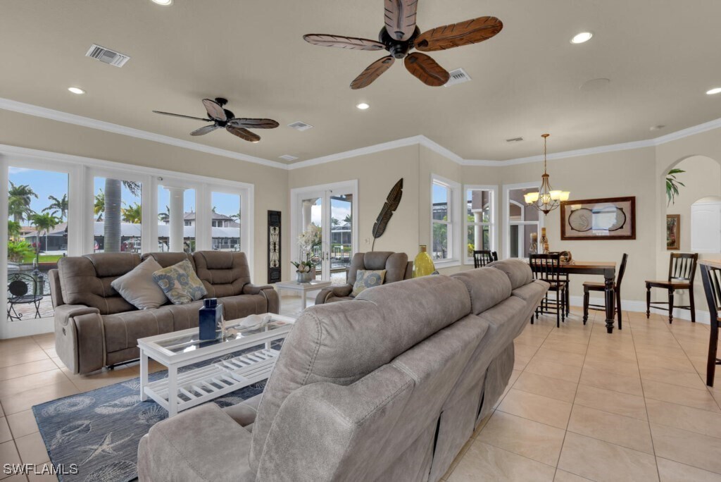 Paradise Villais the place for you. If you're looking for a vacation on the water,you'll find it at this home! The property sits on a canal that leads out to the Caloosahatchee River and Gulf of Mexico. Take the bikes or a 10 minute walk (0.6 miles) over to Cape Harbour where you can enjoy waterfront dining,shopping and entertainment. This grand home has plenty of room for your entire group to enjoy,especially if you're looking to relax poolside. The sprawling pool (and hot tub) are complemented by a gorgeous wide deck. Grill with a view of the canal,or just enjoy the view underneath the two-story lanai. Guests looking to bring their boat will love this home's incredible boat access - feel free to tie up on the boat dock! ?Inside,guests can cook up delicious meals in a luxurious kitchen outfitted with a French door refrigerator,double oven,and special prep island with an extra sink. The home's private office is perfect for remote work or schooling. You'll have your pick of places to relax throughout this breezy home. The bedrooms of this home are all spread out,so you'll have your pick of great views. Turn right while in the downstairs living room to find the first bedroom,all set up with a private pool deck entrance and an en suite bathroom that features double sinks,a standalone shower,and a soaking tub. Climb the stairs and turn right to reach the home's luxurious second bedroom. In addition to a gorgeous multi-window view of the canal,this room features an en suite bathroom with double sinks,a shower/tub combination,and a hallway entrance. Head down the catwalk-style hallway and turn right to reach the home's main bedroom - you'll be thrilled with this room's gorgeous private furnished balcony,extra seating,and spacious en suite bathroom with two vanities,jetted tub,and stone stand alone shower. The fourth bedroom is set up for guests that want to bunk together - in addition to two beds,this room has a two-window view of the front yard. The fifth and final bedroom is ideal for younger guests. Every bedroom includes a ceiling fan in addition to home-wide central air conditioning. Beach towels and six adult bikes are available for guest use. There are also age-appropriate games for the younger guests. Pool heat is available for $25/day or at a reduced monthly rate but is only needed Oct to May. Commercial vehicles and boat trailers are not allowed to park overnight per city rule. The dock is available for guests to tie up a boat (the lift is not available for guest use). The dock can fit up to a 50 ft boat. Ropes or equipment are not available for guest use. The water depth in the canal is 10 feet deep - swimming is not recommended due to canal width. One dog,weighing 30lbs or less,is welcome in this home for a fee of $150. Garage is not available.