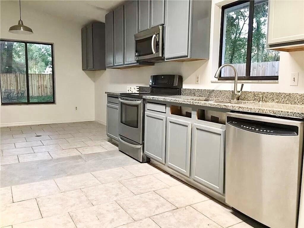 Live in this updated one-story house and enjoy the contemporary interior,all in grey shades. This 3 bedroom home features 2 bathrooms,open-floor plan interior with elegant galley kitchen featuring a large grey granite island,lots of cabinets space,a large convivial counter eating area,luxe built-in desk,stainless steel appliances and breathable vaulted ceilings. The dining room is situated right next to the kitchen for easy serving and entertaining. The ensuite master bedroom boasts a full bathroom and walk-in closet. The baths feature very nice natural light and offer both tub and shower in the home. The back patio is an enjoying space you may spend some time as it is entertainment-ready with a built-in high-top bar,large terrace,and very spacious and fenced backyard for family and pets to enjoy. The many trees are a beautiful addition to the property and the fence keeps privacy at the forefront. The garage fits 2 cars comfortably,welcomes the washer & dryer,and the driveway can host your many guests' vehicles (at least 4). This dead-end street assures minimal traffic and the quiet you need after a workday. Visit,apply and make this property the piece of heaven you have been waiting for! MLS# O6394597