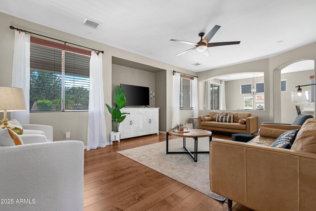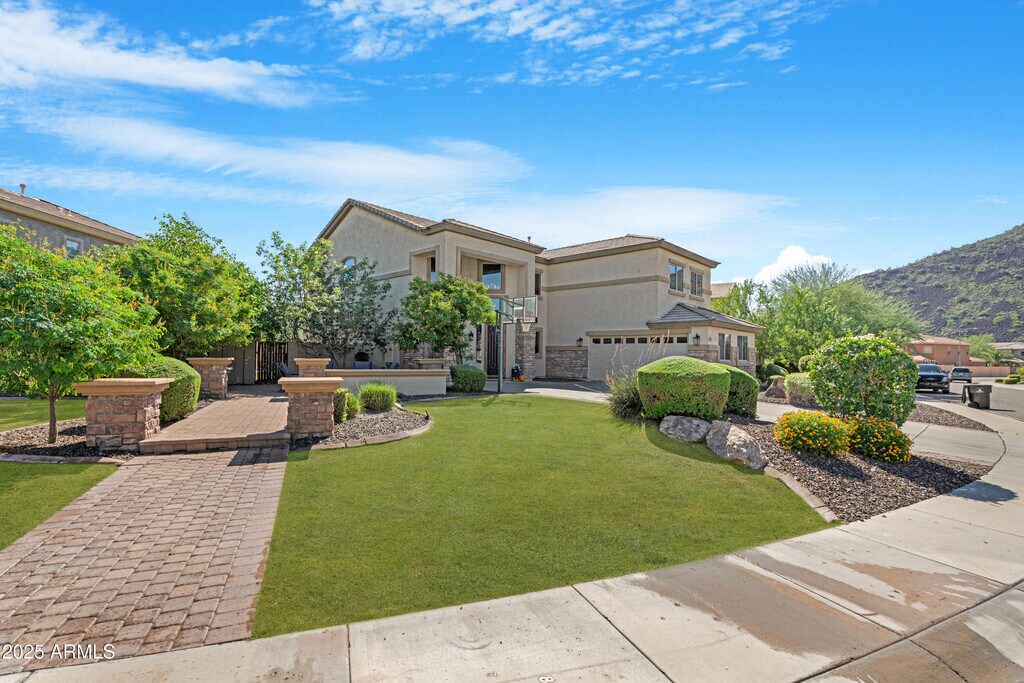 This impressive two-story home offers approximately 3,422 sq ft of living space,featuring 5 bedrooms and 3 full bathrooms,ideal for families or professionals needing extra space. This home boasts a generous floor plan: formal living/dining areas plus large family room and bonus loft/loft-space upstairs for flexibility. The gourmet kitchen with island,ample counter space,walk-in pantry,and built-in appliances is perfect for entertaining. Primary suite features a private bathroom with dual sinks,separate tub and shower,and a large walk-in closet. Upstairs bonus/game room,additional bedrooms,and full bath make the home ideal for families with children,guests,or a home office. The backyard includes a covered patio,built-in BBQ,private spa and pool for year-round Arizona enjoyment