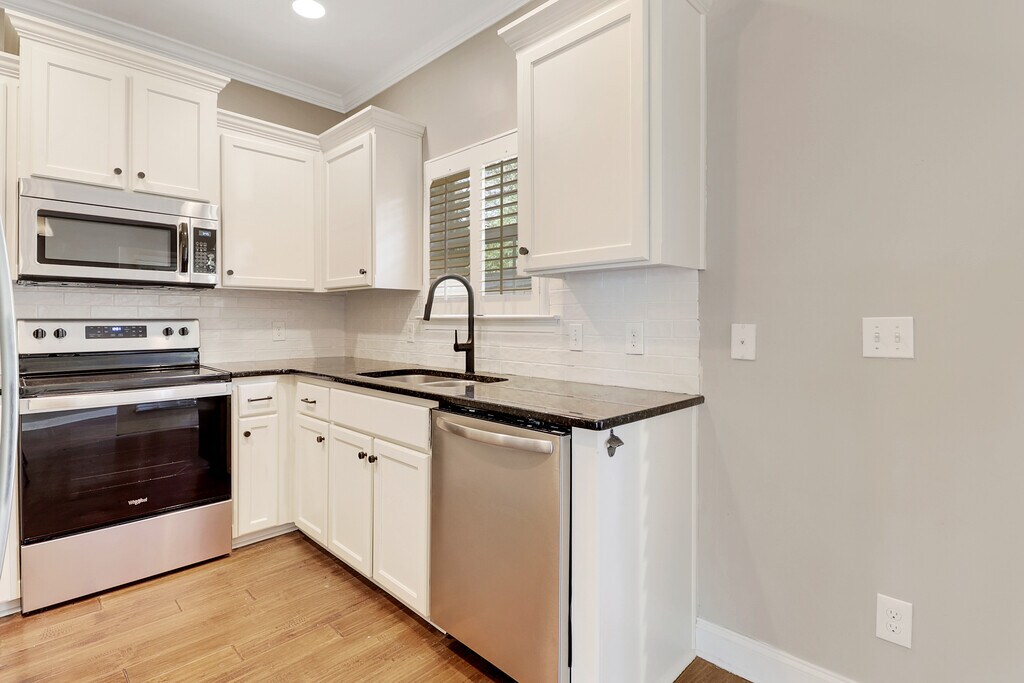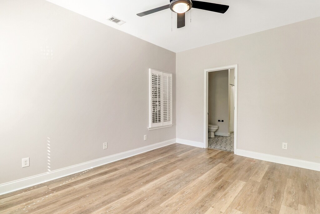 Gorgeous 3 bed 2.5 bath in close proximity to downtown! This home features vinyl floors with an open concept that invites plenty of natural light. The kitchen comes equipped with sleek black counter tops contoured with white cabinets and stainless steel Refrigerator, microwave, oven/stove and dishwasher. Making your way upstairs you will find two bedrooms both with tons of space and walk-in closets. The bathroom also features private vanities in each bedroom! This unit includes off street parking and a private fenced in backyard with extra storage space! Located: .6 miles from Forsyth Park and downtown. 1.3 Miles from Daffin Park .4 miles from Tacos and Tequila and countless other dining options. Tenant responsible for all utilities