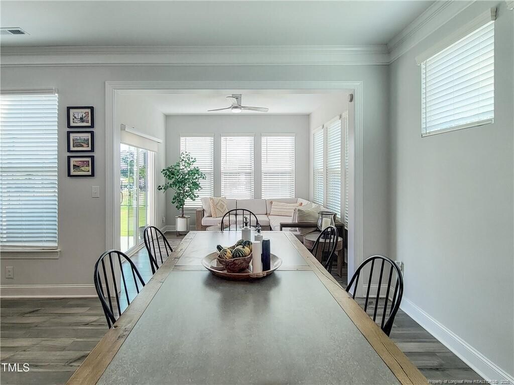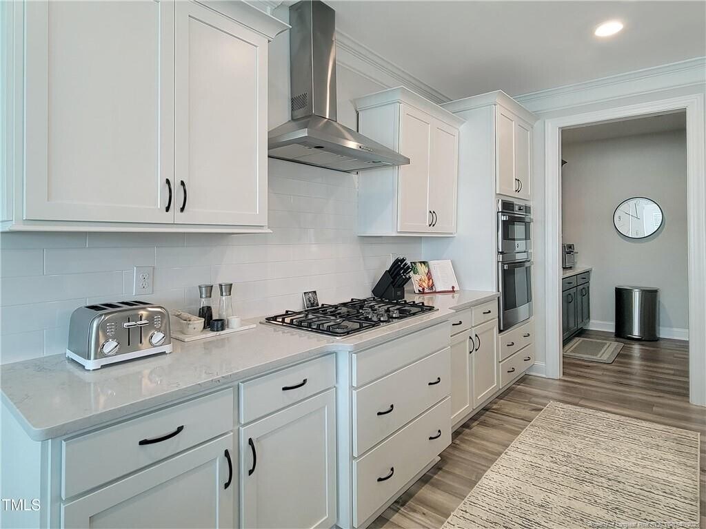 Luxury awaits at 542 Glenwyck Court! Come visit this home today and prepare to fall in love. This home has been lovingly-maintained by the owners and is being offered in truly immaculate condition. Upon arrival, you're greeted by a timeless, Craftsman-inspired facade with a covered front porch, a wide driveway and an attached 2 car garage. Once inside, you'll be greeted by tall ceilings, beautifully detailed trim work, natural light and luxury plank flooring that graces the entire ground floor living area. The foyer opens on the right to a coveted home office (currently being utilized as a formal dining room) with double full-length glass doors, double windows, and a custom chandelier. Head down the hallway and you'll find yourself in an expansive, open-concept living area that includes a centrally-located kitchen, a family room, a dining area and even a sunroom! The kitchen is a sight to behold! The center attraction" is undoubtedly the massive, quartz-topped island with a breakfast bar, triple pendant lights and a deep-bowl undermount stainless-steel sink. Beautiful white cabinetry flanks the rear and right sides of the island. Here, you'll find additional acres of quartz countertops, a custom subway-tiled backsplash and a suite of high-end appliances including a dishwasher, a gas cooktop with an externally-vented commercial-style hood, a wall oven, a built-in microwave. The kitchen continues to impress with an adjacent scullery offering invaluable additional cabinetry and meal-prep space as well as an adjoining, walk-in pantry offering an abundance of storage space. The kitchen is open to the family room with a cozy gas log fireplace, dual picture windows, recessed LED perimeter lighting, a custom ceiling fan and a flat panel TV mount. Next, you'll enter a perfectly-proportioned dining area full of natural light and seamlessly intertwining with the family room as well as the stunning sunroom that offers additional living space with 6 picture windows, a ceiling fan and direct access to the rear patio via a sliding door. The first floor is also home to a spacious and desirable first floor suite with direct access to a full bathroom that includes a granite-topped vanity and a walk-in shower with a bench and glass enclosure. Before heading upstairs, be sure to check out the tucked-away powder room as well as the attached 2 car garage with a mud room entry that includes a drop-down spot offering cubbies, hooks, and a bench; the perfect spot to keep everything organized and consolidated. The second level is home to 5 more bedrooms as well as a conveniently-located laundry room with washer/dryer included. At the top of the stairs, you'll also find a sought-after loft offering invaluable additional living space that could be utilized in a myriad of different fashions. The primary bedroom is quite spacious with a tray ceiling and multiple picture windows only adding to the scale of this space. The primary suite also showcases a massive, walk-in closet as well as a luxurious bathroom featuring tiled flooring, a granite-topped vanity with dual undermount sinks, a linen storage space, a water closet, and an impressive walk-in shower, fully-tiled with a frameless glass surround two windows, a wrap-around bench, dual shampoo niches, and dual showerheads (including a showerhead with a removable wand). Bedrooms #4 and #5 are both generously-proportioned with ample closet space, lovely natural light and easy access to a full hall bathroom with dual undermount sinks on a granite-topped undermount sink. Bedroom #6 also boasts an en-suite bathroom and a walk-in closet. The backyard at 542 Glenwyck Court includes an expansive concrete patio overlooking a flat, lush backyard as well as a beautiful community pond with a walking path and a fountain."