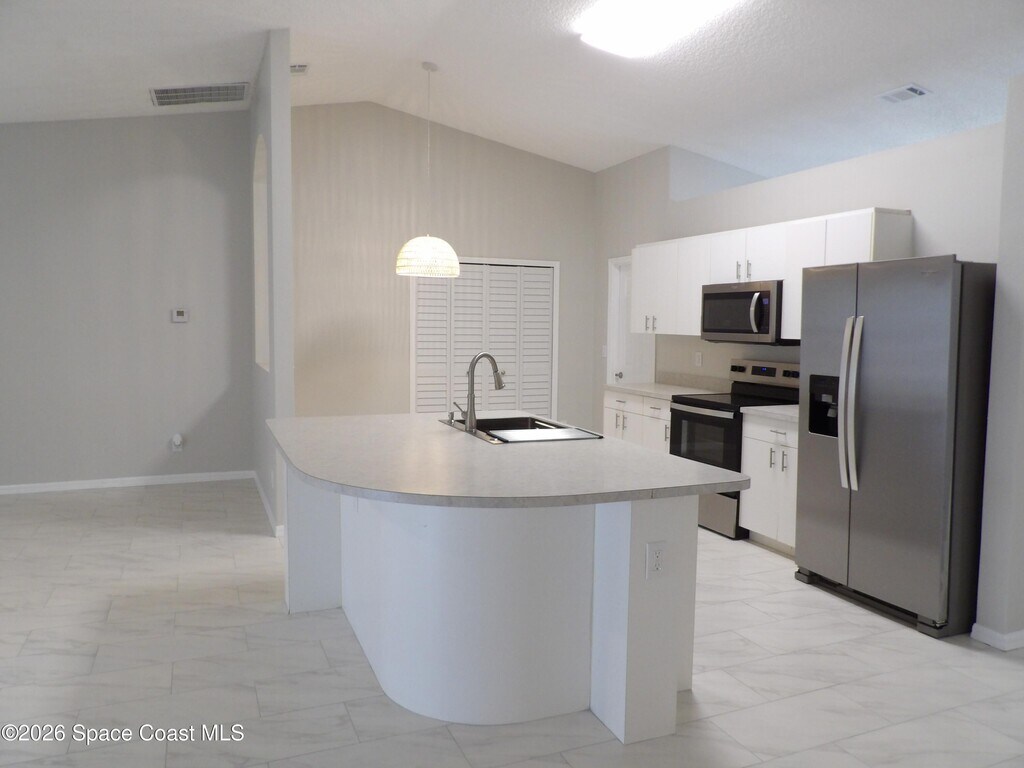 BEAUTIFUL & SPACIOUS 3BR/2BA CITY WATER HOME WITH AN ENORMOUS 12X59 SCREENED PORCH! FRESHLY PAINTED INTERIOR WITH BRAND NEW TILE THROUGHOUT AND A FLEXIBLE FLOORPLAN TO FIT YOUR LIFESTYLE. UPON ENTRY,A LARGE FRONT ROOM CAN SERVE AS FORMAL LIVING OR DINING. TO THE LEFT IS A VERSATILE FLEX ROOM PERFECT FOR A HOME OFFICE,PLAYROOM OR POTENTIAL USE AS A 4TH BEDROOM (NO CLOSET). THROUGH THE ARCHED OPENING IS A HUGE EAT-IN KITCHEN WITH ISLAND,PANTRY,BUILT-IN DESK AND LOADS OF CABINETS,OPEN TO THE EXPANSIVE FAMILY ROOM--IDEAL FOR ENTERTAINING. STEP OUT TO THE MASSIVE SCREENED PORCH OVERLOOKING THE FENCED YARD. THE PRIMARY SUITE FITS A KING BED AND FEATURES A LARGE CLOSET,SOAKING TUB,WALK-IN TILED SHOWER,VANITY SEATING AND PORCH ACCESS. CONVENIENTLY LOCATED,SCREENED FRONT ENTRY OVERSIZED LAUNDRY ROOM WITH EXTRA SPACE PLUS ACCORDION HURRICANE SHUTTERS AROUND HOME. ONE PET ALLOWED,40 LB MAX WITH $350 NON-REF PET DEP AND VET RECORDS. CLOSE TO SCHOOLS AND SHOPPING. MLS # 1069700