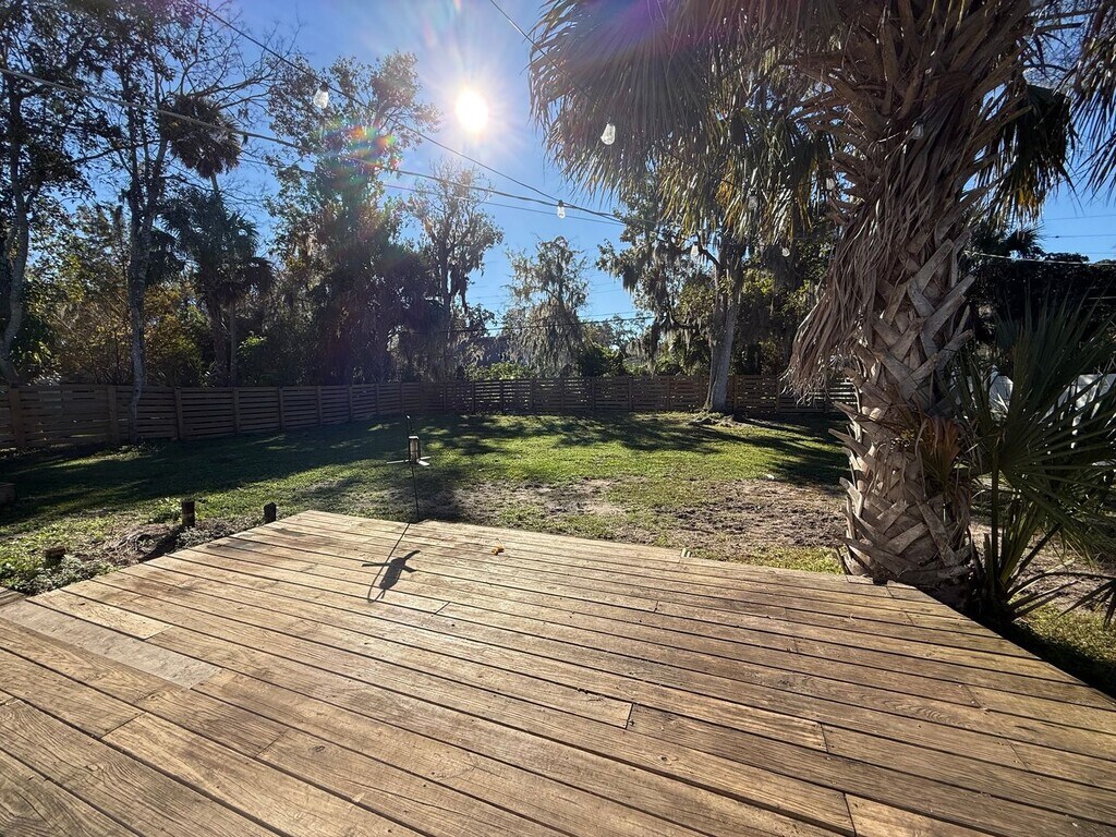 Welcome to this charming 3-bedroom, 2-bathroom home located in the vibrant Daytona Beach, FL. This property boasts a 1-car attached garage, providing ample storage and convenience. Step inside to find a modern, updated kitchen, equipped with all the essentials for your culinary adventures. The home also features two beautifully updated bathrooms, adding a touch of elegance and comfort. The washer and dryer on-site ensure your laundry days are hassle-free. Enjoy the Florida sunshine in your own fenced backyard, offering a private space for outdoor activities. This home combines modern living with a prime location, making it a perfect choice for those seeking a blend of comfort and convenience. Lawn & utilities are tenant's responsibility. No smoking/Small pet may be considered with owner approval and additional fees required. 1 months rent & security deposit equal to 1 months rent required to move in. Background & credit check required. All Blue Palm Property Management residents are enrolled in the Resident Benefits Package (RBP) for $50.00/month which includes liability insurance, credit building to help boost the resident’s credit score with timely rent payments, up to $1M Identity Theft Protection, HVAC air filter delivery (for applicable properties), move-in concierge service making utility connection and home service setup a breeze during your move-in, our best-in-class resident rewards program, on-demand pest control, and much more! More details upon application. Palm Terrace Elementary School Grades: PK-5Distance: 2.1 mi Campbell Middle School Grades: 6-8Distance: 0.6 mi Mainland High School Grades: 9-12Distance: 0.7 mi