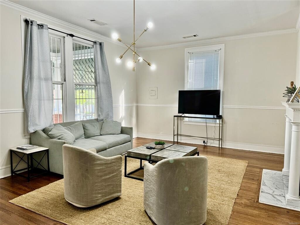 Available November 1st! Contact Cynthia Faurote, REALTOR at to schedule showing or more information. This beautifully renovated 4-bedroom, 2-bathroom home is located in the heart of Cottage Hill, just minutes from downtown Montgomery. It features hardwood floors throughout, an updated kitchen with plenty of counter space, and modern bathrooms. The spacious living and dining areas are perfect for relaxing or entertaining. Outside, you'll find a large backyard with a patio and firepit, ideal for outdoor gatherings. Additional amenities include a bonus room that can be used as a home office or playroom, a laundry room with built-in cabinets, and a two-car carport with extra storage.