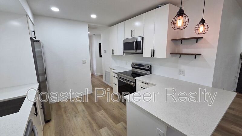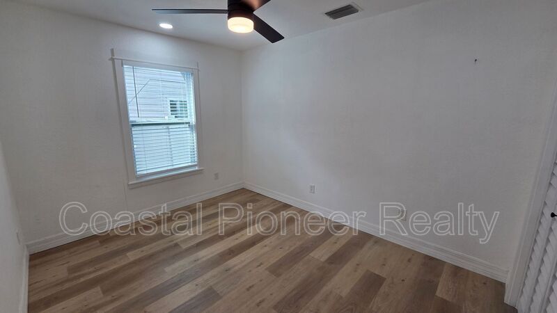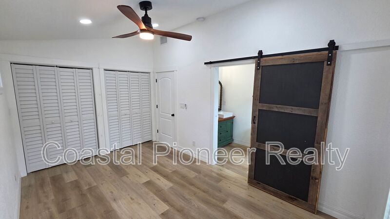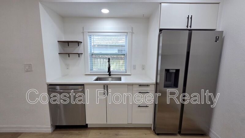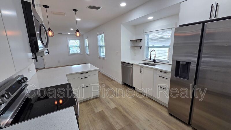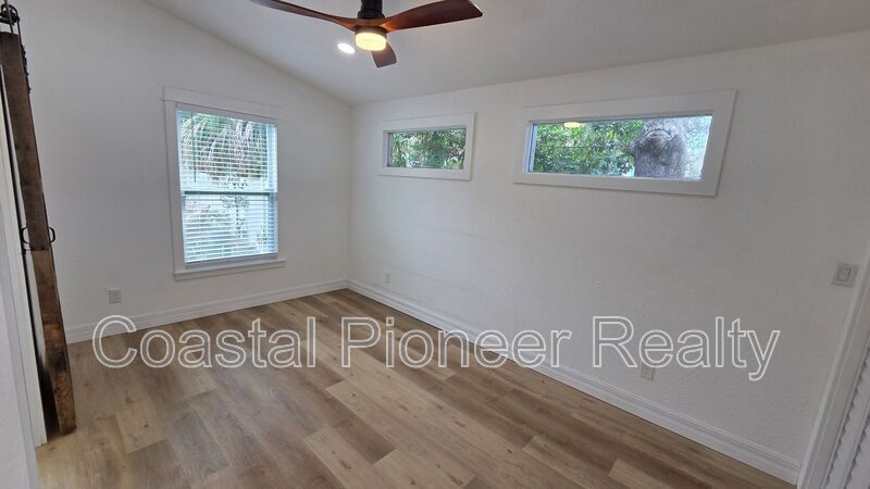 Discover your new home in Gulfport! This beautifully renovated single-family home perfectly blends modern updates with classic Florida charm. As you enter, the light luxury vinyl flooring and bright white walls create an open, airy feel, complemented by modern black fixtures and ceiling fans. The kitchen is a chef's dream, featuring exquisite white granite counters and a full suite of updated appliances, ready for your culinary creations. Unwind in the spacious bedroom, which includes a clever dual-closet system for ample storage. The elegant sliding barn door leads to a luxurious bathroom, complete with a stunning walk-in shower—your personal spa retreat. A dedicated laundry room with a washer and dryer adds convenience to your daily routine. Step outside to a private, low-maintenance backyard. The lush turf and shared, fenced-in space with a fire pit are perfect for hosting gatherings or simply enjoying a quiet night under the stars. Experience the best of Gulfport living in this beautiful home!