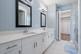 West Lake community with gated entry and resort-style amenities. This Seaview Coastal Elevation floorplan offers 3 bedrooms, 2.5 baths, plus a loft that can be converted into a 4th bedroom. Spacious 2-story home with impact windows and doors, quartz countertops, and a 2-car garage with driveway space for 4 more vehicles. Features include a lake view, large backyard, oversized first-floor main bedroom with en-suite bath and walk-in closet, open living and dining areas, designer kitchen with pantry, island seating, powder room, and full laundry room.