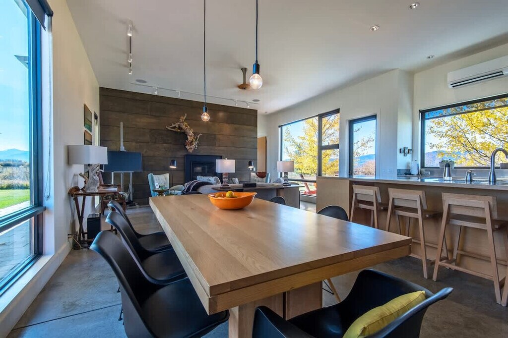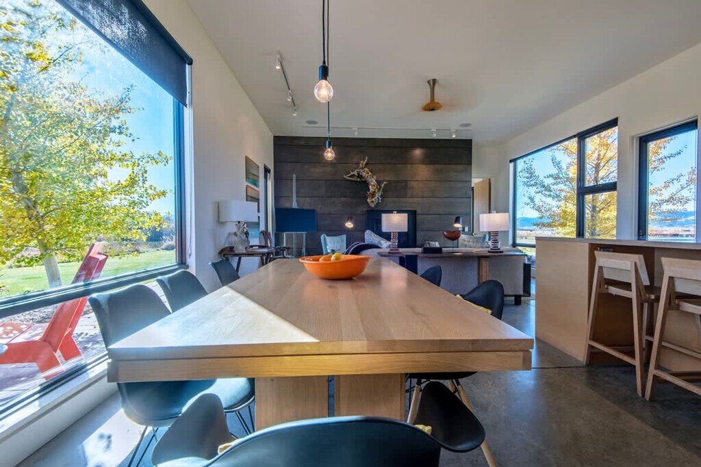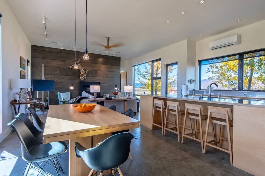 Escape to this exquisite 3-bedroom, 2.5-bathroom home, nestled in the serene northern reaches of Victor. This idyllic retreat boasts breathtaking 360-degree mountain panoramas, all within the embrace of 20 sprawling acres teeming with wildlife. At every turn, you'll feel at home, mesmerized by the majesty of the surrounding mountains, thanks to thoughtful design that integrates the great outdoors into your living space through expansive floor-to-ceiling windows. Welcome to this spacious vacation home with an inviting open floor plan! On the ground level, you'll find the well-equipped kitchen, a charming dining area, and a cozy living room. The master bedroom, also conveniently located on the ground floor, features a comfortable king-size bed and a private master bathroom with a ¾ bath. Upstairs, there are two more bedrooms to accommodate your group. One bedroom boasts a king-size bed, while the other offers a queen-size bed. These two bedrooms share a lovely full bathroom. Additionally, there's a delightful sitting area just off the bedrooms, perfect for unwinding after a day of adventure. To make your stay even cozier, there is a propane burning stove in the heart of the living area, creating a warm and inviting ambiance on chilly winter nights. This location is a dream for outdoor enthusiasts, with easy access to world-class fishing, hiking, kayaking, mountain biking, and skiing. Distances to National Parks include Yellowstone - West Entrance at 2 hr 8 min (110.3 mi), Yellowstone - South Entrance at 2 hr 18 min (96.7 mi), and Grand Teton at 51 min (33.8 mi). You can also access hiking and activities in the Tetons here in Teton Valley, affectionately called the quiet side of the Tetons. Distances to Ski Resorts include Grand Targhee Ski and Summer Resort at 33 min (19.3 mi) and Jackson Hole Mountain Resort at 43 min (30.1 mi). Distances to Regional Airports include Idaho Falls, ID (IDA) at 1 hr 19 min (70.8 mi), Jackson, WY (JAC) at 57 min (38.2 mi), and Bozeman, MT (BZN) at 3 hr 32 min (191.6 mi). Distances to area towns include Driggs, ID at 12 min (7.2 mi), Victor, ID at 8 min (4.4 mi), Jackson, WY at 44 min (28.9 mi), and Teton Village, WY at 44 min (30.2 mi). Treat this home as if it were your own and be respectful of the rules, neighbors, and local community at the base of the Tetons. The number of people at the property should not exceed the maximum sleeping capacity. Quiet hours are from 9 pm to 8 am. No events, parties, large gatherings, weddings, smoking, or vaping are allowed in the home or on the decks. An additional charge will be applied if any smoking-related waste is found on the property. Turn all exterior lights off at night to enjoy the dark skies. Drive slowly in the neighborhood in respect of children, pets, and wildlife. A maximum of three licensed vehicles is allowed in the driveway and garages. No riding snow machines, dirt bikes, or ATVs in the subdivision or at the rental property. Do not burn candles or incense in the home and no fireworks on the premises. Keep all main entry doors locked when not occupied. Fines will apply for violations including but not limited to: leaving garbage in house or litter on grounds, smoking in house or garage, failure to follow house rules and respect posted signs, failure to follow check-out procedure, or violations of local laws. A minimum $500 fine for smoking, vaping, or marijuana use in the house, violation of house rules, posted signs, laws, or failure to vacate at check-out time. Compliance with these rules is essential for every member in your group. The right to evict any guests or visitors from the property who refuse to follow these house rules with no refund given is reserved.
