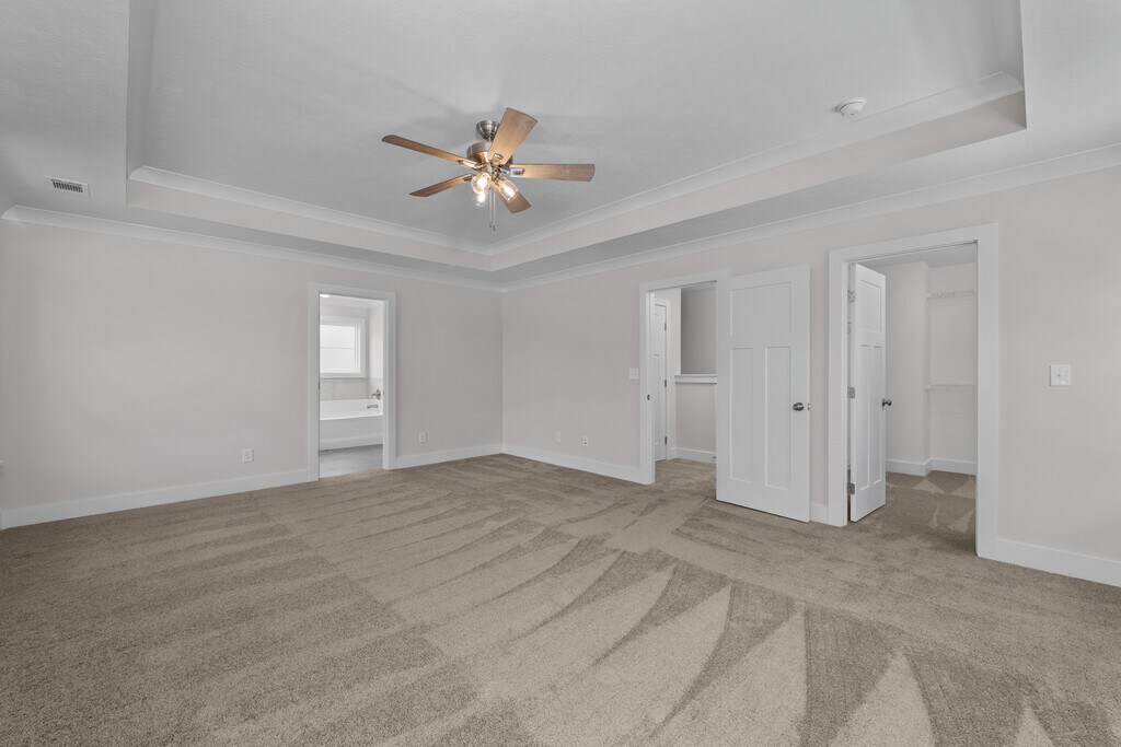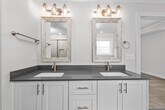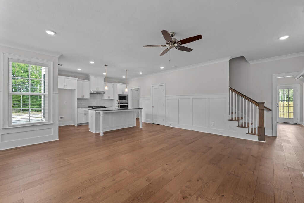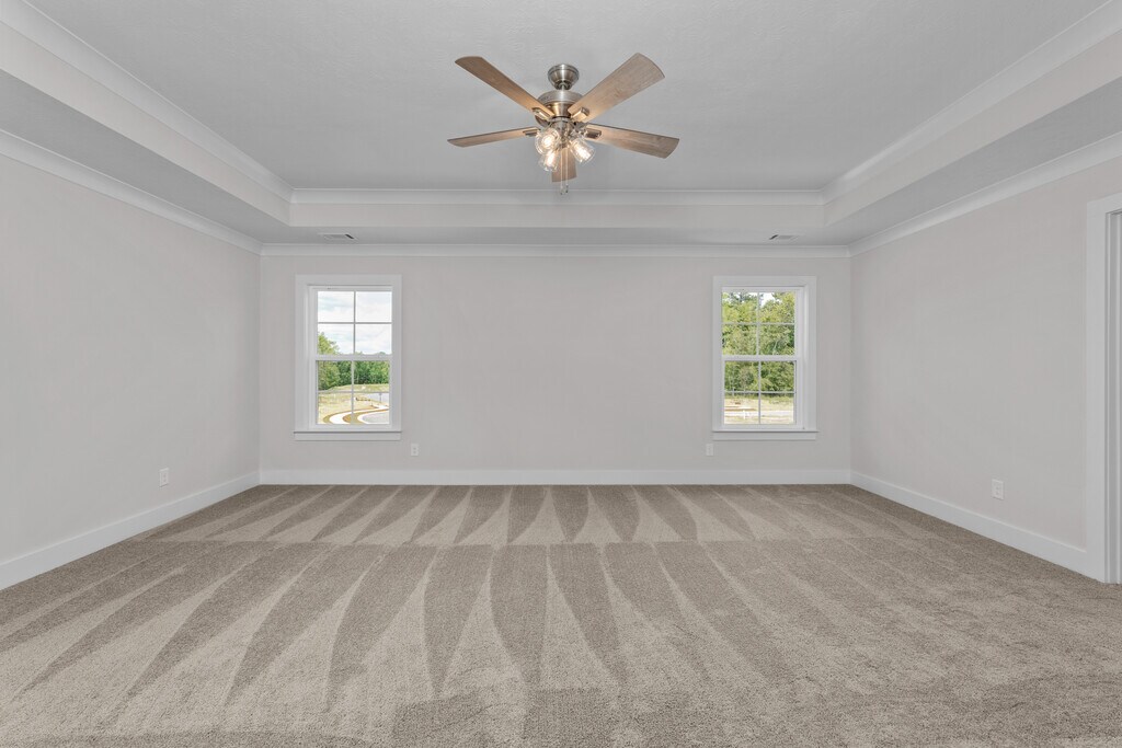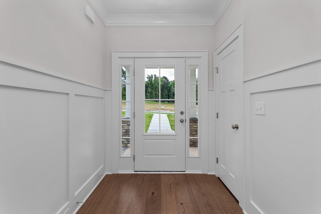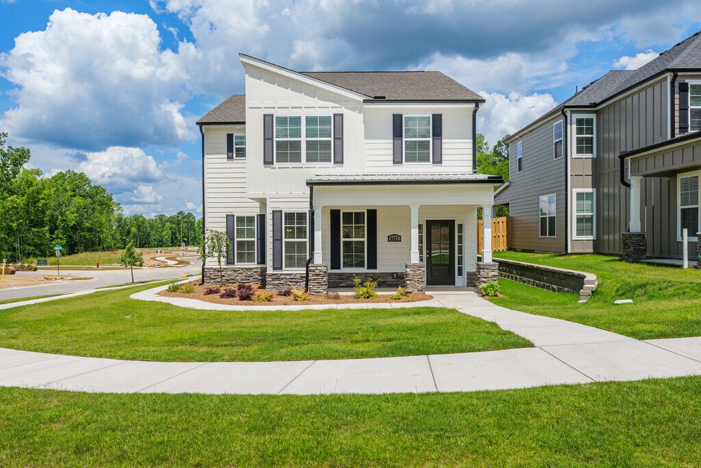Luxury 4 bedroom/2.5 bath two-story home with 2-car garage in brand Misty Meadows neighborhood in Grovetown. Covered, well-lit front porch opens to foyer and large coat/storage closet, leading to open floor plan living area. Half bath with single sink vanity located off foyer. Great room has engineered hardwood flooring throughout and 9ft ceilings, ceiling fan and is open to kitchen and dining area. Well equipped kitchen with stainless appliances, ovens, gas and electric, dishwasher and disposal, pantry, kitchen island with overhang for barstools. Power pantry has additional water line for additional fridge/ice maker hookup. Adjacent dining area with decorative wainscotting and pendant lighting. Primary bedroom with trey ceiling and fan, carpet, huge walk-in closet and spacious en suite bath with water closet, linen closet, large walk-in shower and separate soaking tub. Spacious 2nd, 3rd and 4th bedrooms, one with walk in closet. Adjacent 2nd bathroom with dual sink vanity, tub/shower combo and toilet in private water closet. Convenient upstairs laundry room with storage cabinet and hanging rack. Mud bench and coat pegs in mud area at entrance to 2-car garage. Large covered patio with uncovered section and fully fenced backyard #goodtoask