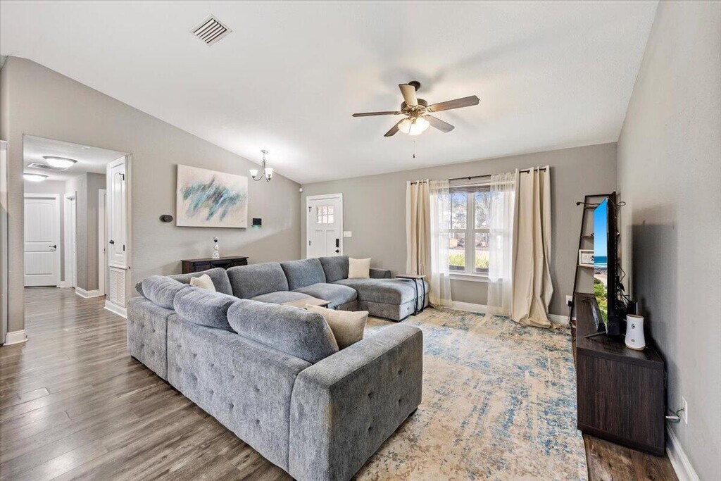 *AVAILABLE: JUNE 8TH, 2026* Beautiful south-facing, all-brick home built in 2020 in Gulf Breeze--NO HOA! Step inside to a light-filled, open-concept layout with vaulted ceilings and elegant finishes throughout. The kitchen is a standout, featuring granite countertops, stainless steel appliances, custom cabinetry, and a spacious pantry.The split floor plan offers a private primary suite complete with a walk-in closet and double vanity, while three additional bedrooms provide flexible space for guests, a home office, or family living.Enjoy the Florida lifestyle in your large, fenced backyard--ideal for relaxing evenings or hosting gatherings. A two-car garage adds convenience and extra storage.FEES: NON-REFUNDABLE PET FEE $250. SECURITY DEPOSIT FEE $1485.