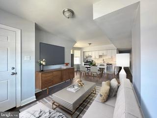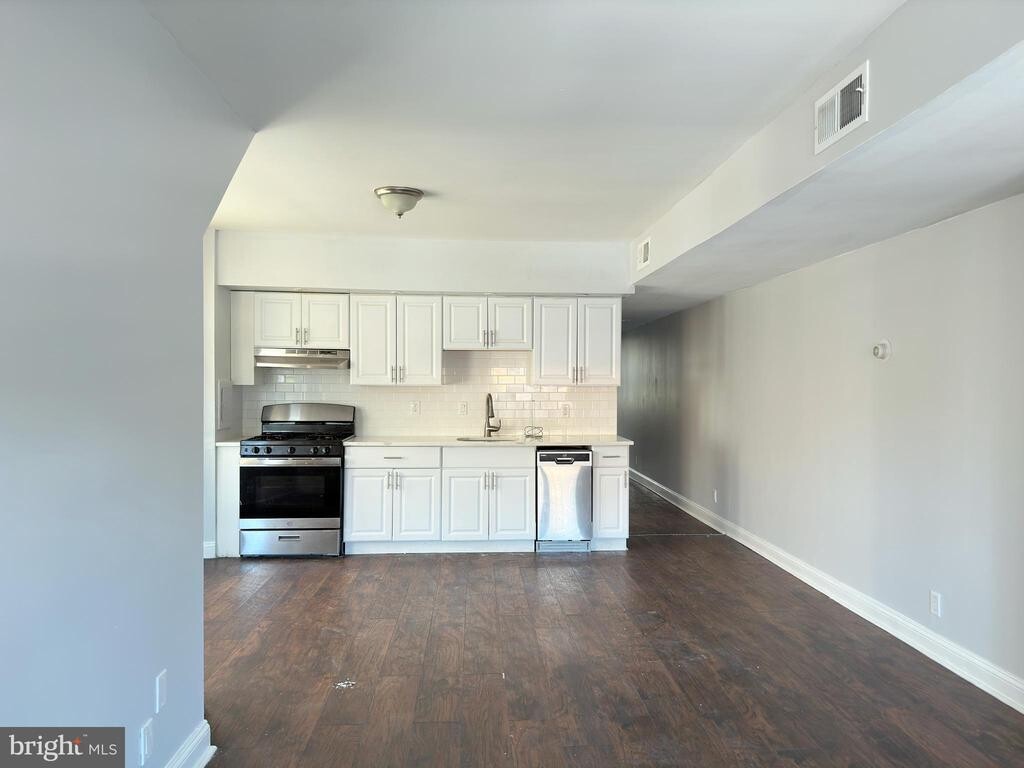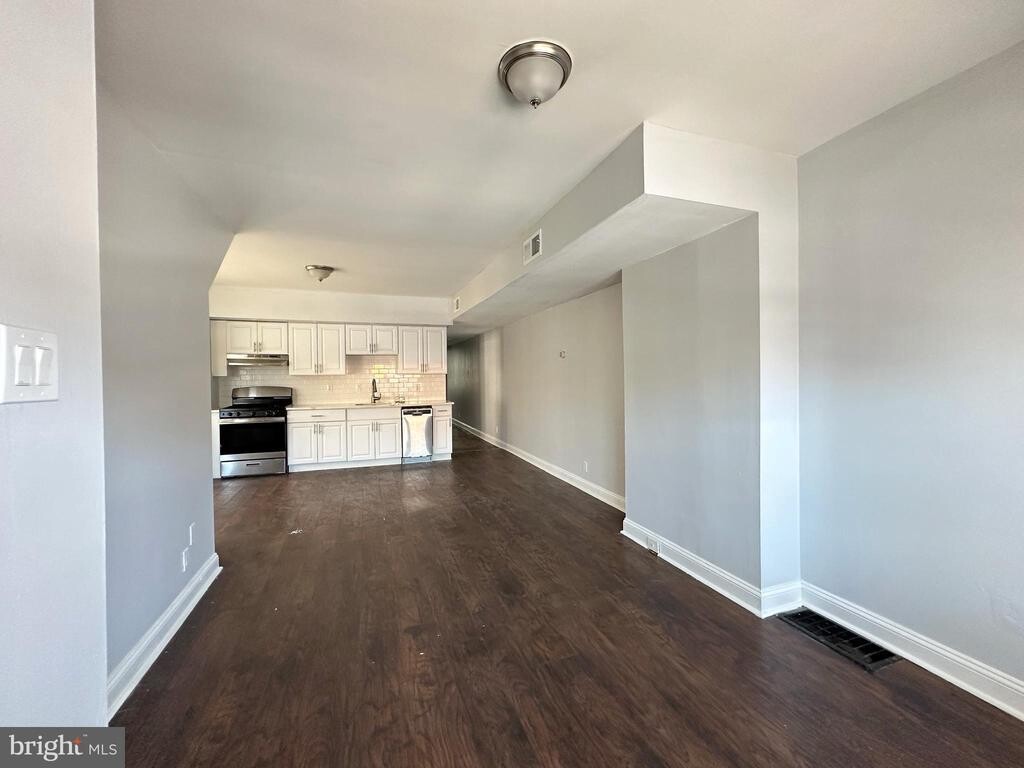A two-bedroom and one-bathroom 1st-floor apartment in the Cobbs Creek neighborhood of Philadelphia is now available for rent. Upon entering the apartment, you will be welcomed by an open living room and dining room and a beautiful and spacious white kitchen with white shaker cabinets, chrome pull handles, and stainless steel appliances, including a dishwasher, gas stove, and refrigerator. It features beautiful flooring, white trim, gray walls, and plenty of natural light. Both bedrooms are nicely sized and have ample closet space. Additionally, there is a large full bathroom with a built-in linen closet, marble-like tile, and a tub/shower. Living in this apartment provides easy access to public transportation, including Light Rail Station 34 and bus stop G. Take advantage of the opportunity and schedule your showing today! Disclaimer: Some photos in this listing include virtual staging for illustrative purposes only. The furniture and decor shown are computer-generated and do not reflect the actual contents of the property. No furniture, accessories, or other personal property depicted in the images are included.