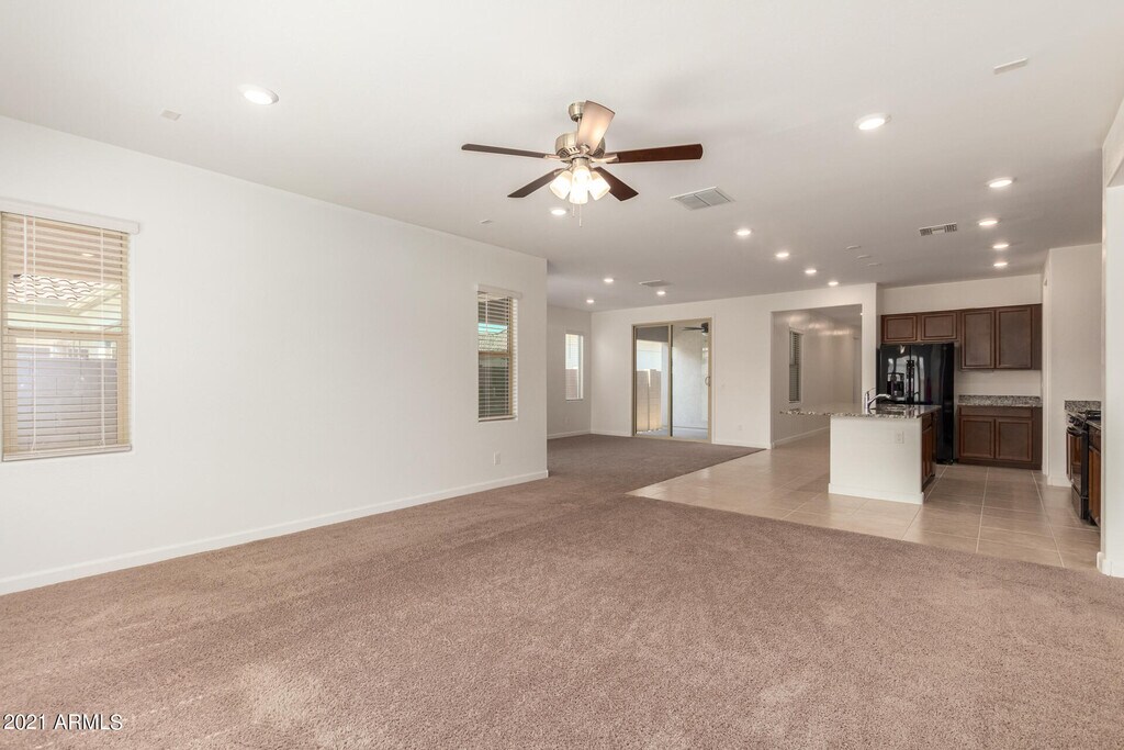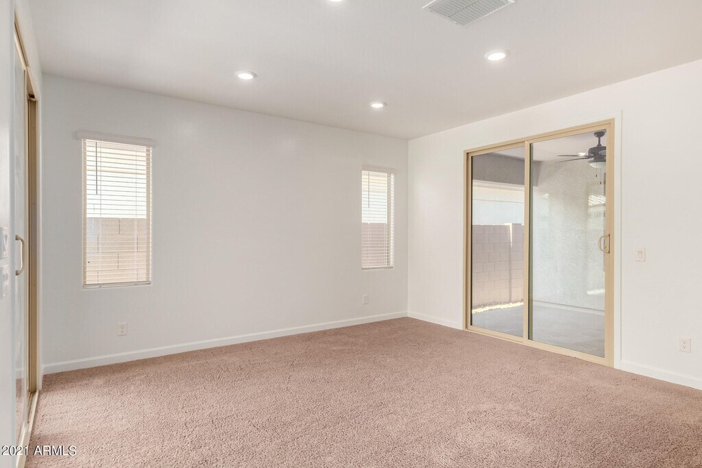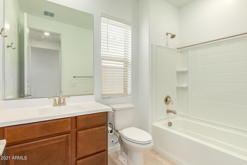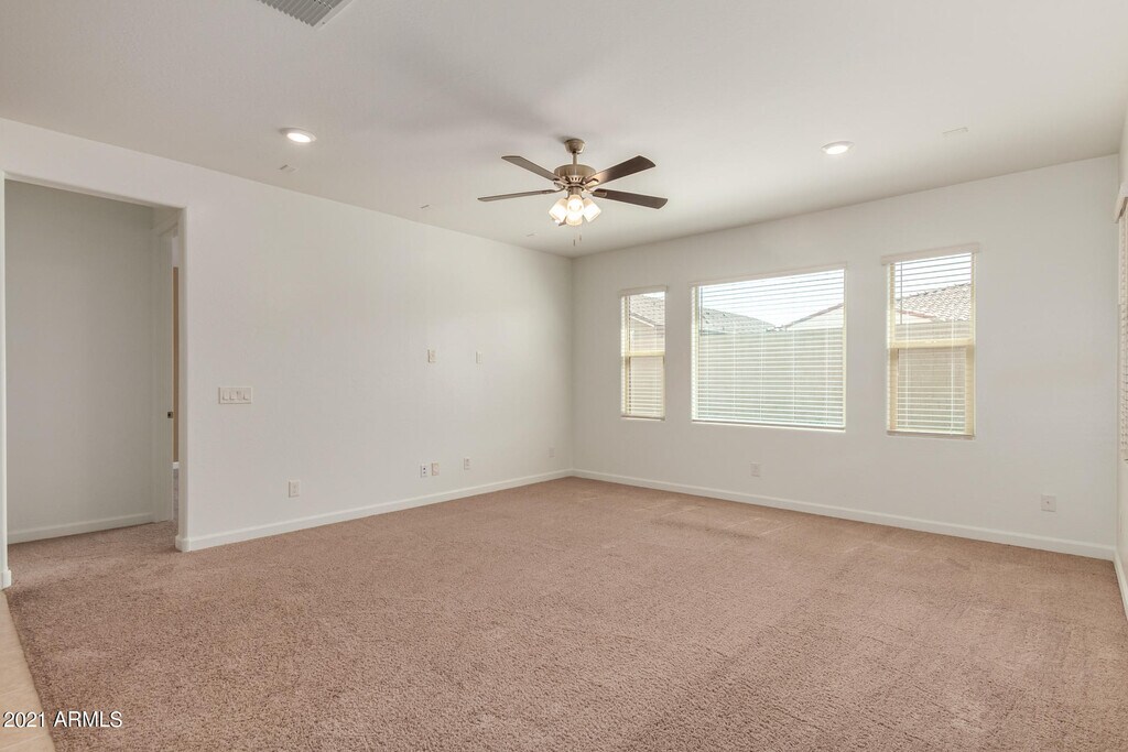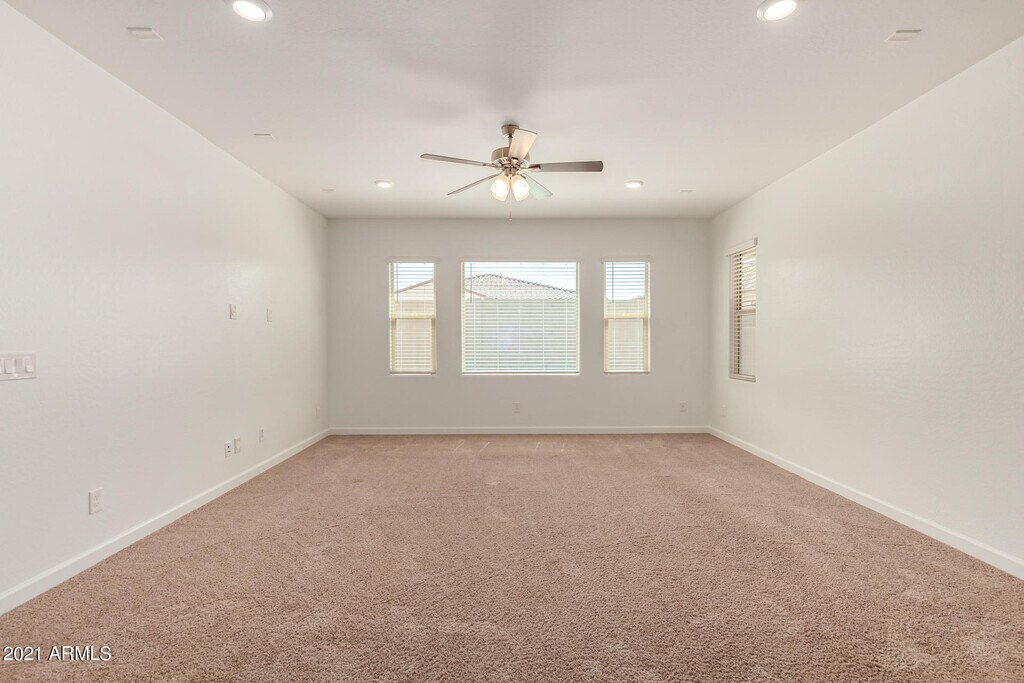 Vacant and move-in ready! New single level house built in 2020 in Cadence at Gateway. Facing the community park and walking to community center with all amenities: pool,fitness center,basketball court,tennis courts and more! Upgraded tile and carpet. 3 full bathrooms with one inside 2nd master bedroom! Granite counter,double-door refrigerator. Washer and dryer provided. Easy maintenance yards,big pavements in backyard. Close to San Tan 202 highway (less than 1 mile) and schools.