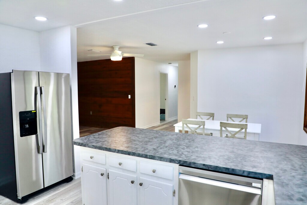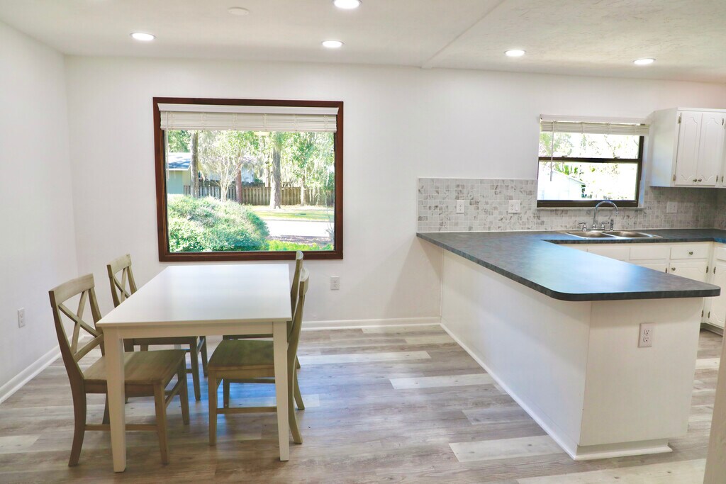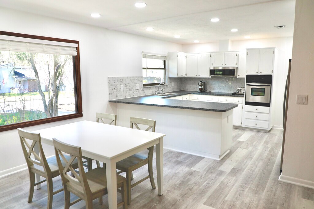 Newly renovated, bright 2 bedroom, 2 bathroom house in adorable Valwood community. Featuring brand new stainless steel kitchen appliances, luxury vinyl floors, high-end Samsung washer and dryer with steam cycles. Open floor plan with spacious living room, featuring natural rough cedar wall and cozy wood-burning fireplace. Electric Vehicle charging outlet in the garage. Eco-bee thermostat connecting to Alexa. Large back deck overlooks a sizable backyard with beautiful sunrises. Short walk to Publix on Tower Road. Enjoyable shaded walk to the Haile Village Center with boutique shopping, restaurants, famous Haile farmers market & several popular seasonal festivals. Walking distance to great schools - Kimball Wiles Elementary School and Kanapaha Middle School. Miles of walking/biking trails straight from your door. No smoking allowed. Up to two pets permitted.