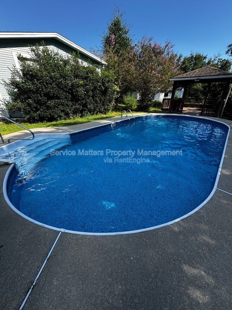 What better way to beat the summer heat than in your own pool. Skip the beach with this one and spend every day relaxing in your backyard. You'll also love the location of this home, tucked away in a neighborhood but with easy access to shopping and dining. The home features a double carport with laundry and storage off it. Inside, the home features real wood throughout with tile in the wet spaces. The living room and additional study space provide flexibility for arranging furniture, and a large formal dining area off the kitchen accomodates a big gathering of family and friends. The kitchen includes a full suite of appliances, white cabinets, and a pass through space for the dining area. You'll love the spacious owner's bedroom and all the closet space it provides. And the guest rooms offer plenty of space too. The backyard features a covered patio and gazebo which make great places to relax when you're not swimming. And if you need extra space for tools, check out the storage shed in the backyard. Did we mention that pool maintenance is included? Catch this one before it's gone. By submitting your information on this page you consent to being contacted by the Property Manager and RentEngine via SMS, phone, or email.
