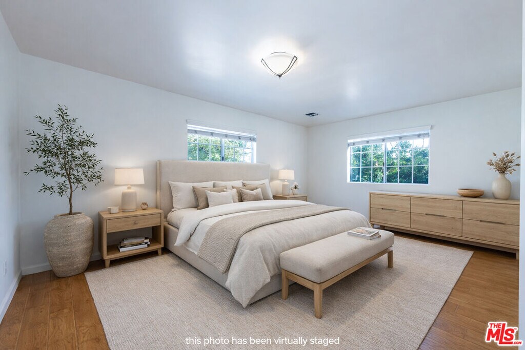 Welcome to this charming unit in a quaint six-unit complex, ideally located in the heart of North Hollywood. Thoughtfully designed, this two-bedroom, two-bathroom home offers a comfortable blend of space and convenience. Step inside to a bright and inviting living room with beautiful wood floors that flow into an open-plan dining area, creating a welcoming space for relaxing or entertaining. The freshly painted interior enhances the light and airy feel throughout the home. The kitchen is well-appointed with generous counter space and appliances including a refrigerator, dishwasher and stove/oven. Upstairs, the spacious primary bedroom easily accommodates a king-size bed and offers a peaceful retreat. The ensuite bathroom features a glass shower stall and modern fixtures. The second bedroom is also bright and well-sized; perfect for guests, a home office. The guest bathroom includes a convenient tub-shower combination. Outside, the paved backyard area provides a private outdoor space ideal for grilling or enjoying time with friends. Additional conveniences include hookups for a washer and dryer and parking for one vehicle. Located in North Hollywood, this home is just minutes from local dining, entertainment, shopping, and everything the neighborhood has to offer. MLS# 26662681