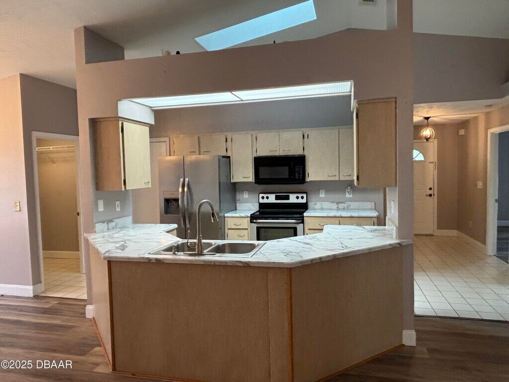 Beautiful and spacious 3 bedroom 2 bath 2 car garage home in highly sought after Port Orange is available for rent! This Johnson built home has stainless steel appliances with vinyl and tile floor coverings. Large open kitchen with U-shaped counters,dual stainless steel sinks,skylight and a pantry. Formal dining,huge closets and storage closet out back. Living room has volume ceiling and sliding doors that take you to a covered patio and a great back yard complete with pavers and privacy fencing. Inside laundry hook-ups. Large over sized garage has additional cabinetry for storage.
