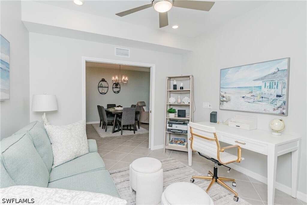 Beautiful furnished 2-bedroom + den, 2-bath condo with a detached garage located at in Ave Maria. This well-maintained home offers a spacious and open layout, perfect for comfortable living in one of the most desirable golf communities in the area. The condo features a bright living and dining area, a modern kitchen with stainless steel appliances, ample cabinet space, and a functional open-concept design. The primary suite includes a private bathroom and walk-in closet, while the second bedroom and additional den provide flexible space for guests, a home office, or seasonal visitors. Enjoy relaxing on the private screened lanai while taking in the peaceful surroundings. The property also includes a detached garage, offering additional storage and convenience.Located in The National Golf & Country Club, residents enjoy resort-style amenities including golf, a pool, fitness center, tennis, pickleball, and more. Conveniently close to shopping, restaurants, and everything Ave Maria has to offer.