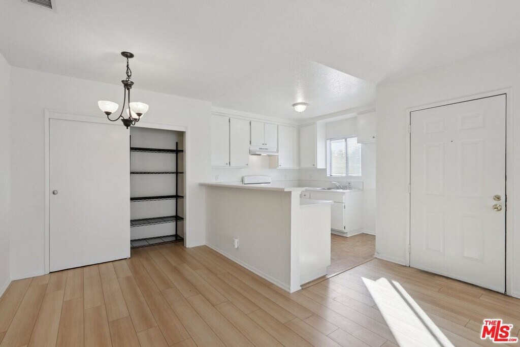 Tucked away on a quiet cul-de-sac in the heart of Valley Village, this turn-key two-bedroom, one-bath apartment offers comfort, privacy, and convenience. Located at the rear of an impeccably maintained four-unit building, this top-floor apartment is filled with natural light and a sense of tranquility. Crisp white walls and light laminate wood flooring flow throughout the spacious layout, creating a bright and cohesive living environment. The airy kitchen features a stainless-steel sink, built-in cutting board, gas stove, and abundant storage. A raised countertop provides space for casual dining or working from home, while a dedicated dining area includes an oversized closet with shelving, ideal for use as a pantry or additional household storage. A hallway closet with built-in shelving offers convenient linen and towel storage. Both bedrooms are generously sized and include mirrored closet doors with built-in shelving and hanging racks for effortless organization. The bathroom is enhanced by a skylight that brings in natural light and includes a shower/tub combination, built-in vanity, and a medicine cabinet for added storage. An oversized living room allows for flexible furniture arrangements and opens to a private balcony, perfect for enjoying fresh air in a peaceful setting. Every window is fitted with blinds, making the home truly move-in ready. Each unit has its own water heater, ensuring uninterrupted hot water, while central heating and air conditioning provide year-round comfort. Additional amenities include dedicated two-car parking at the rear of the property and a conveniently located on-site laundry room. Just minutes from the pool and tennis courts at North Hollywood Park, the YMCA, and dining and coffee shops along Lankershim, this home offers easy access to the best of Valley Village and NoHo living. Sorry, no pets allowed. MLS# 26645389