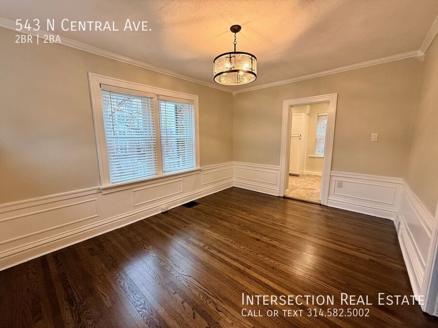 Just a quick walk down the block, and you are at everything downtown Clayton has to offer. Need a coffee? Starbucks is right around the corner! Welcome to 543 N. Central. This classic University City brick home sits on a huge lot, in arguably one of the best locations in the St. Louis area. Inside, you will find beautifully refinished hardwood floors throughout the home. The spacious living room features a gas fireplace and lots of natural light. A bonus room, with a separate door to the front patio, would make a great office space. The home features a separate dining area, and a fantastic kitchen, with tons of cabinet and counter space. There is a half bath on the main level as well. Upstairs, you will find the full bath, plus two large bedrooms. The master has two closets, giving you plenty of space for storage. There is also an unfinished basement, and tuck-under garage. The backyard is huge, and is fully fenced, and features a wonderful brick patio, perfect for entertaining. SCHEDULE A SHOWING: Central Air Granite Counters No Utilities Included