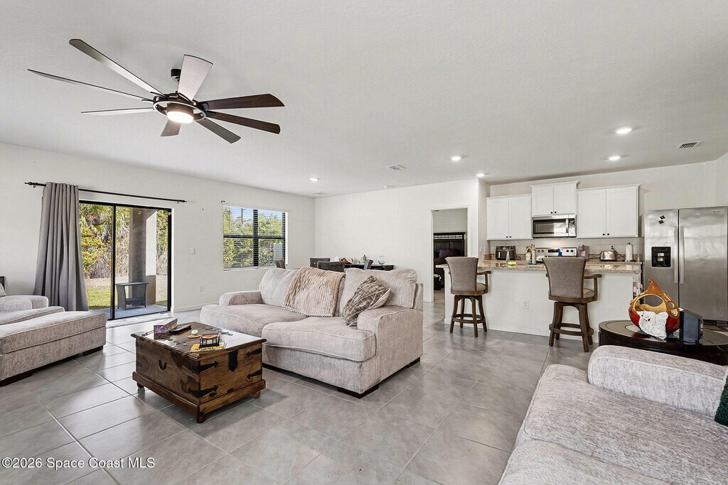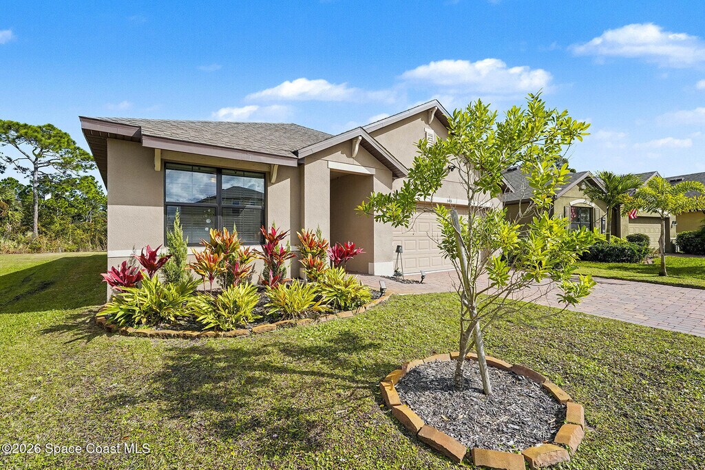 This 3 Bedroom 2 Bath home offers 1672 sq. ft. living space. The floor plan has a covered Lanai added for Extra shade on those long hot summer days. Located in a GATED Community within Bayside Lakes This home features granite countertops,Bright and White cabinets with crown molding,upgraded SS appliances including refrigerator and Window Blinds and ceramic tile added in all living areas except bedrooms. The Family room is very open to the Kitchen. 2 car garage,covered lanai,on a corner lot.The community will have its own pool,Cabana,and tot lot,and also gives access to the Bayside Lakes clubhouse and amenities. MLS # 1067734