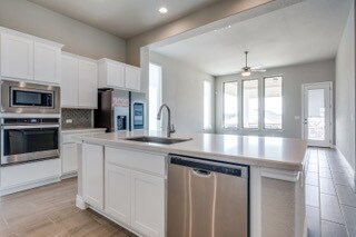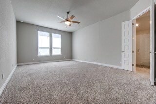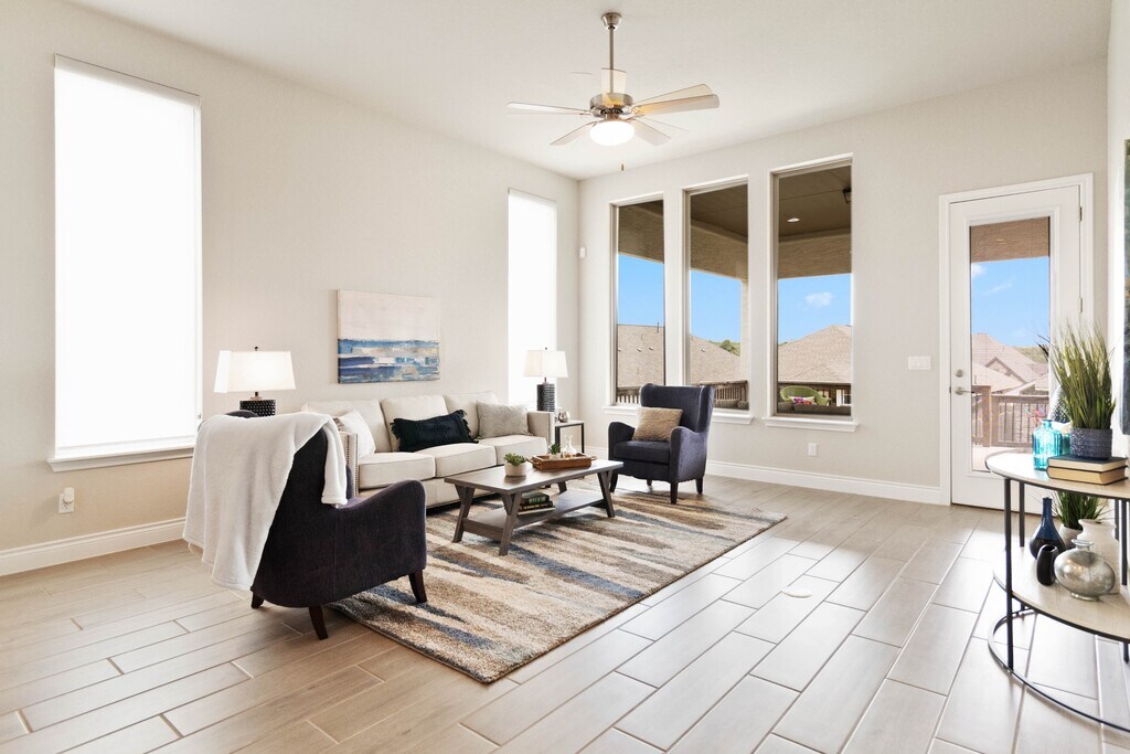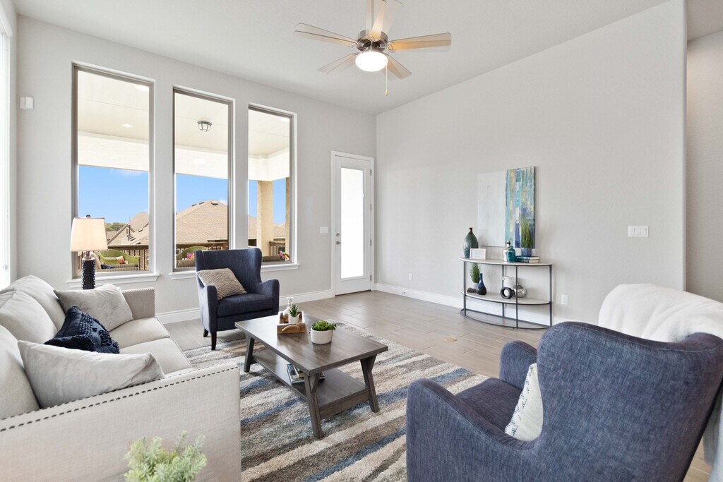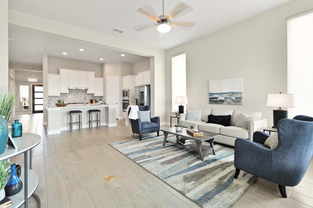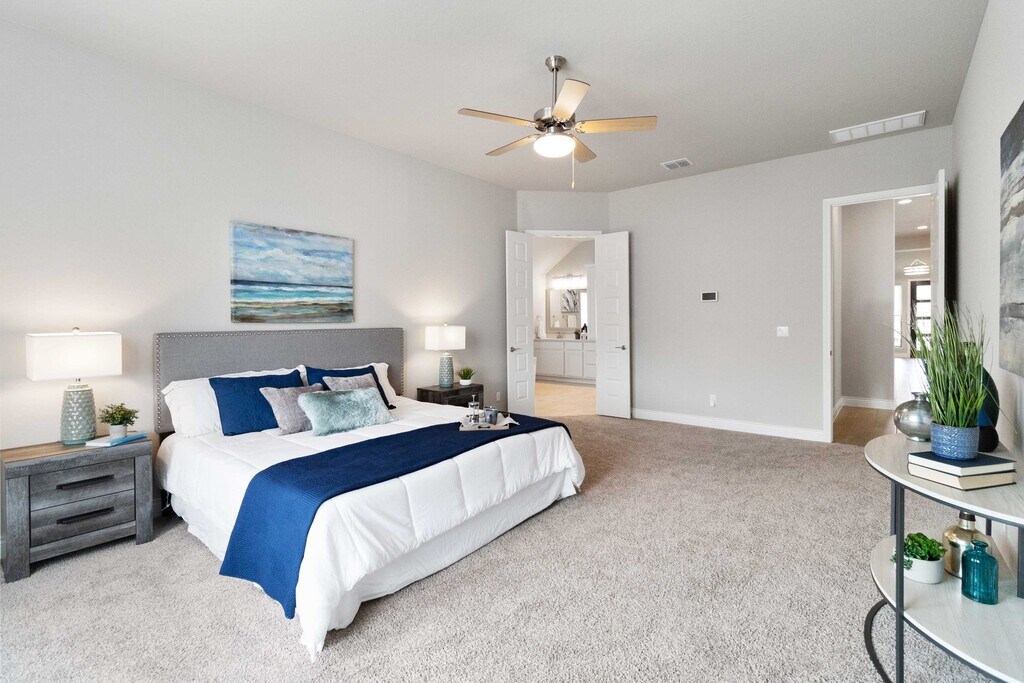 STUNNING 'Cooper' floorplan built by Monticello Homes in the Grove of Vintage Oaks! Open-concept, one story home that features high ceilings, beautiful windows that pour in natural light, 3 car garage and large covered patio for entertaining guests. Gold Series Vesta Water Softener and Graber Roller Shades were installed by previous owner for tenant to use. The kitchen boasts with 42" cabinets, white Quartz Countertops, beautiful stainless appliances (SMART Fridge and Washer/Dryer) & huge island that opens to family room. Oversized Primary suite with amazing EnSuite including soaking tub/separate shower, dual vanities, his and her's large closet spaces. Home is situated close to one of the 2 amenity centers at Vintage Oaks, which includes fitness center, men's and women's locker rooms (with saunas), lap pool, hot tub and yoga studio. Other neighborhood amenities include, lazy river, tennis courts, sport courts and jogging trails. $60 app fee per adult over 18 yrs old.
